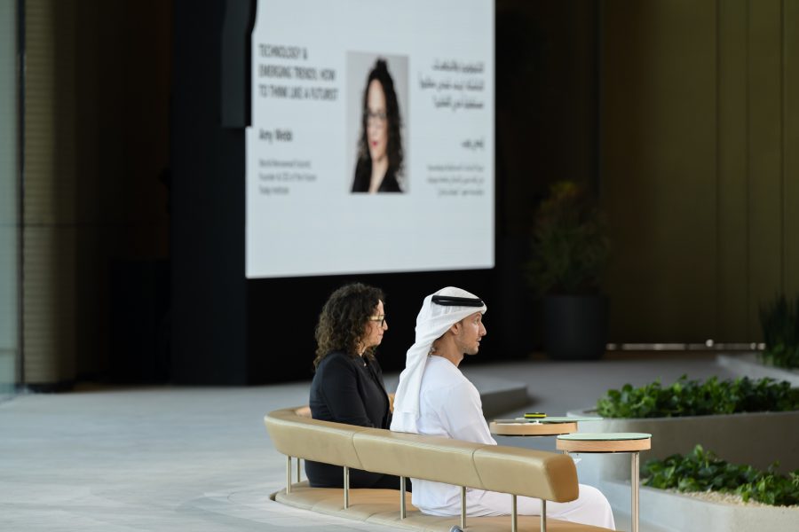 كما شهد المحاضرة.. سمو الشيخ عبدالله بن زايد آل نهيان وزير الخارجية والتعاون الدولي وسمو الشيخ زايد بن محمد بن زايد آل نهيان، ومعالي الشيخ نهيان بن مبارك آل نهيان وزير التسامح والتعايش وعدد من الشيوخ والمسؤولين، فيما قدمت المحاضرة إيمي ويب خبيرة الدراسات المستقبلية والبروفيسورة في كلية ستيرن للأعمال بجامعة نيويورك.