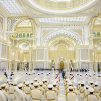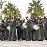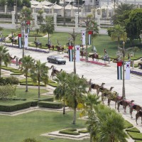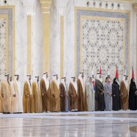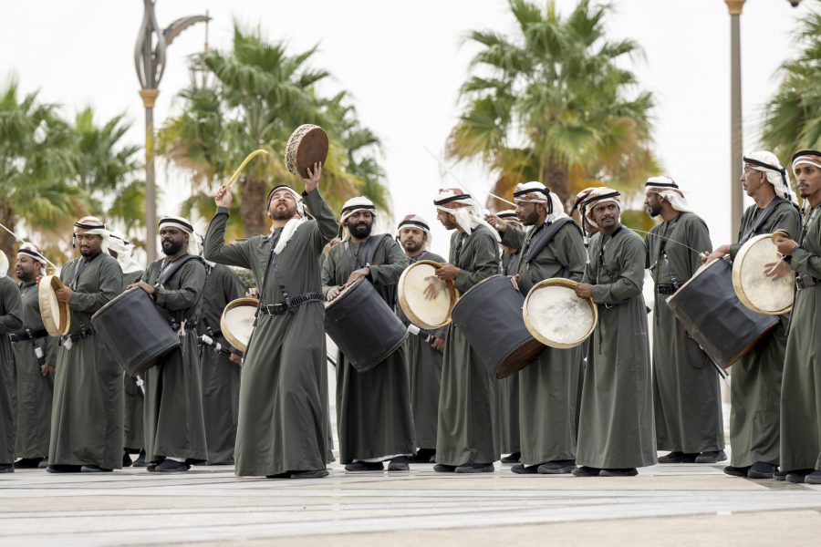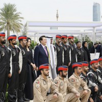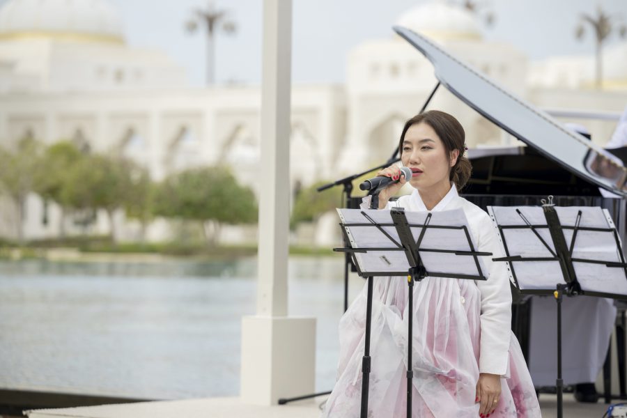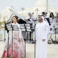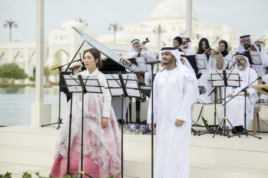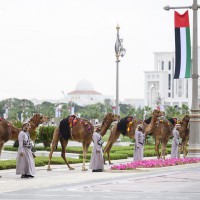 كما قدمت فرق الفنون الشعبية أهازيج وعروضاً من التراث الإماراتي شملت فنون “الندبة والعيالة والحربية” بجانب عروض الخيول والهجن ترحيباً بالرئيس الكوري.