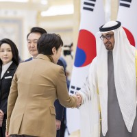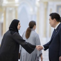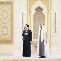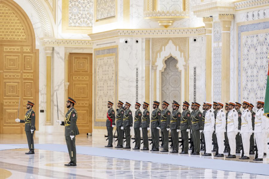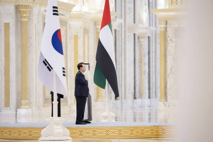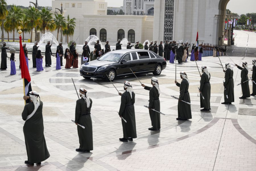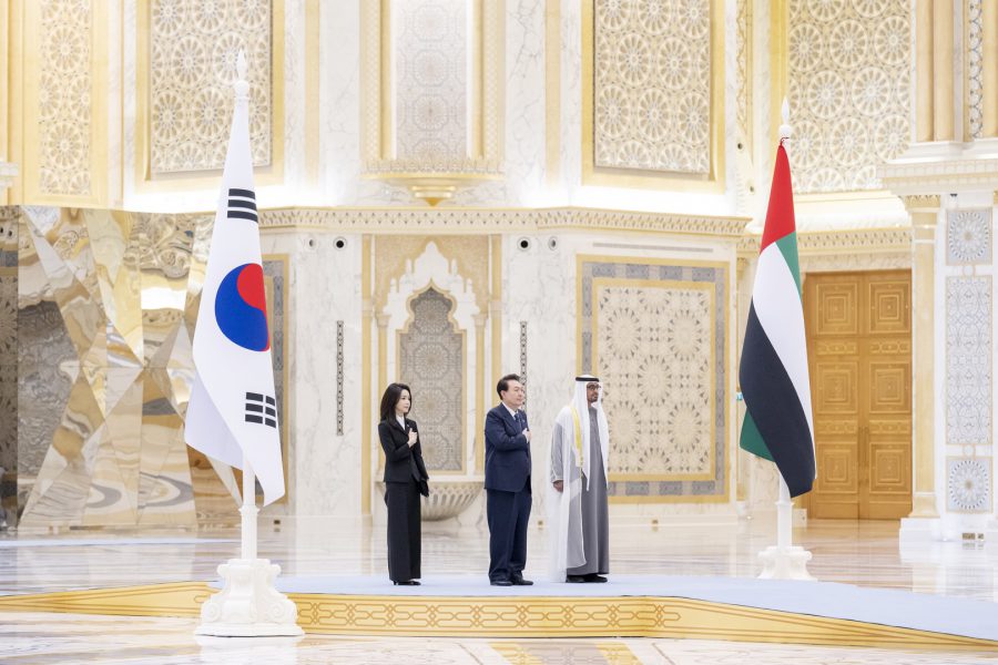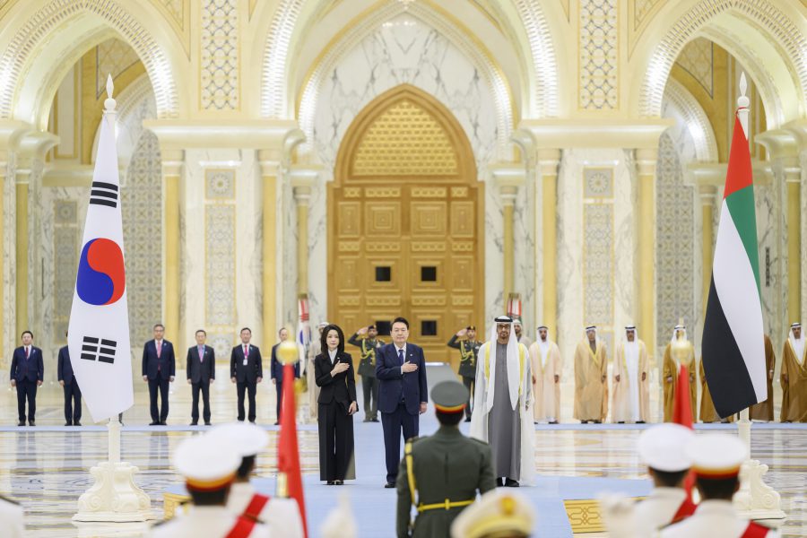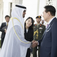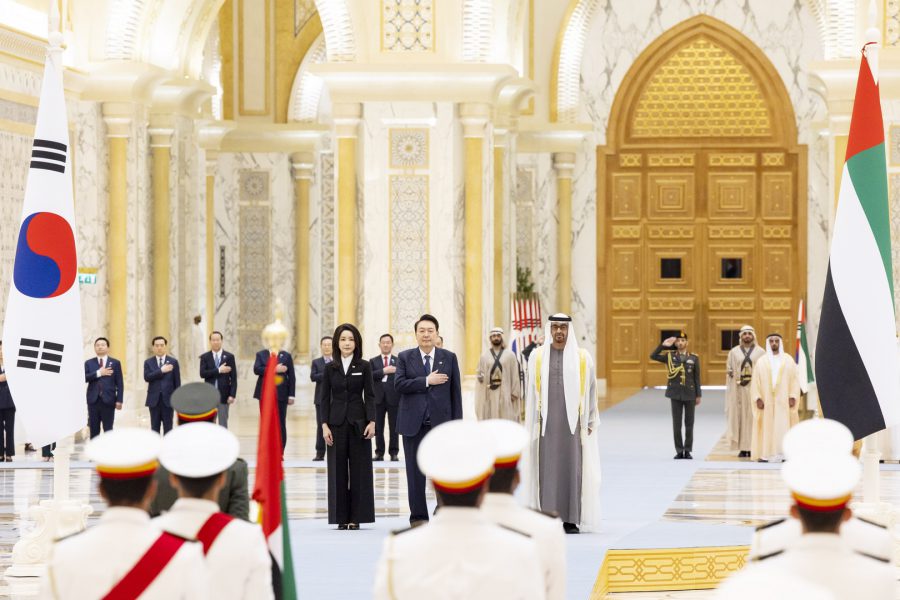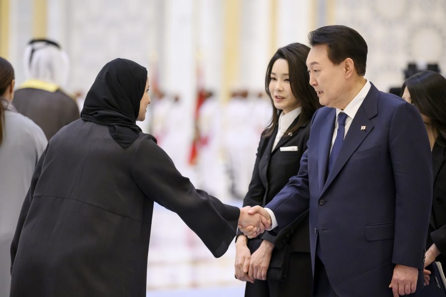 وجرت لفخامة الرئيس يون سيوك يول مراسم استقبال رسمية لدى وصول موكبه قصر الوطن في العاصمة أبوظبي ترافقه مجموعة من الفرسان على صهوات الخيول العربية الأصيلة.