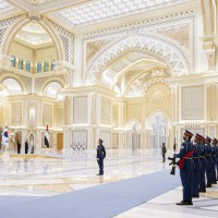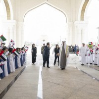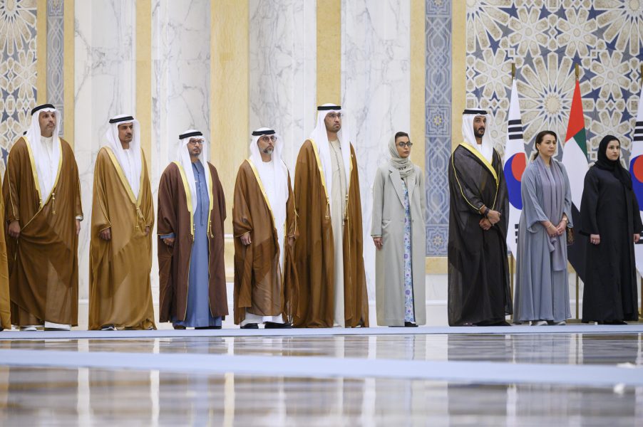 وكان في استقبال فخامته سمو الشيوخ والوزراء وكبار المسؤولين الذين رحبوا بزيارته للدولة وهم.. الفريق سمو الشيخ سيف بن زايد آل نهيان نائب رئيس مجلس الوزراء وزير الداخلية وسمو الشيخ منصور بن زايد آل نهيان نائب رئيس مجلس الوزراء وزير ديوان الرئاسة وسمو الشيخ حامد بن زايد آل نهيان عضو المجلس التنفيذي لإمارة أبوظبي وسمو الشيخ حمدان بن محمد بن زايد آل نهيان ومعالي الشيخ محمد بن حمد بن طحنون آل نهيان مستشار الشؤون الخاصة في ديوان الرئاسة ومعالي علي بن حماد الشامسي الأمين العام للمجلس الأعلى للأمن الوطني ومعالي الدكتور أنور بن محمد قرقاش المستشار الدبلوماسي لصاحب السمو رئيس الدولة ومعالي ريم بنت إبراهيم الهاشمي وزيرة دولة لشؤون التعاون الدولي ومعالي سهيل بن محمد فرج فارس المزروعي وزير الطاقة والبنية التحتية ومعالي الدكتور سلطان بن أحمد الجابر وزير الصناعة والتكنولوجيا المتقدمة ومعالي سارة بنت يوسف الأميري وزيرة دولة للتعليم العام والتكنولوجيا المتقدمة ومعالي سارة عوض عيسى مسلم وزيرة دولة للتعليم المبكر ومعالي نورة بنت محمد الكعبي وزيرة الثقافة والشباب ومعالي عبد الله بن طوق المري وزير الاقتصاد ومعالي مريم بنت محمد سعيد حارب المهيري وزيرة التغير المناخي والبيئة ومعالي الدكتور ثاني بن أحمد الزيودي وزير دولة للتجارة الخارجية ومعالي خلدون خليفة المبارك رئيس جهاز الشؤون التنفيذية عضو المجلس التنفيذي ومعالي فلاح محمد الأحبابي رئيس دائرة البلديات والنقل عضو المجلس التنفيذي وسعادة عبدالله سيف النعيمي سفير الدولة لدى جمهورية كوريا وسعادة محمد الحمادي العضو المنتدب والرئيس التنفيذي لمؤسسة الإمارات للطاقة النووية ومحمد جميل الرمحي الرئيس التنفيذي لشركة أبوظبي لطاقة المستقبل “مصدر” وعدد من كبار المسؤولين في الدولة.