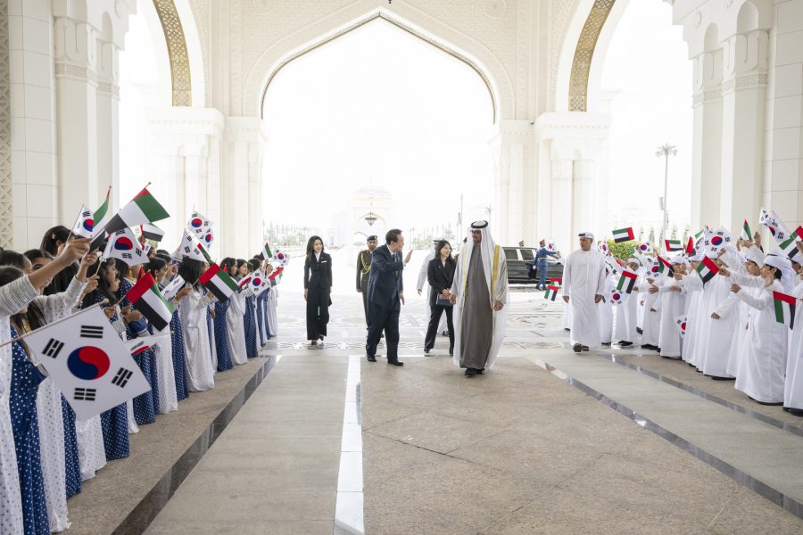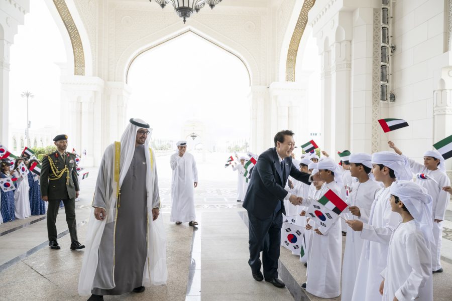 استقبل صاحب السمو الشيخ محمد بن زايد آل نهيان رئيس الدولة “حفظه الله” فخامة يون سيوك يول رئيس جمهورية كوريا الصديقة الذي بدأ زيارة دولة تستغرق عدة أيام إلى دولة الإمارات..ترافقه حرمه السيدة الأولى كيم كيون هي.