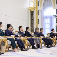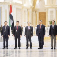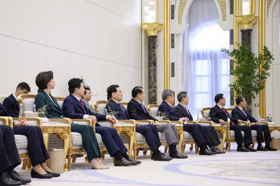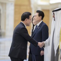 فيما ضم الوفد المرافق للرئيس الكوري كلاً من معالي تشو كيونغ هو نائب رئيس الوزراء وزير الاقتصاد والتخطيط والسيد جو هو يونغ مسؤول الكتلة البرلمانية للحزب الحاكم ومعالي لي جونغ هو وزير العلوم وتكنولوجيا المعلومات والاتصالات ومعالي بارك جين وزير الخارجية ومعالي كوون يونغ سي وزير التوحيد ومعالي لي تشانغ يانغ وزير الصناعة والتجارة والطاقة ومعالي وون هي ريونغ وزير الأراضي والبنية التحتية والنقل ومعالي لي يونغ وزيرة المشروعات الصغيرة والمتوسطة والشركات الناشئة ومعالي هان وا جين وزيرة البيئة ومعالي كيم سونغ هان مستشار الأمن القومي وسعادة يو جيه سيونغ سفير كوريا الجنوبية لدى الدولة بجانب عدد من كبار المسؤولين ورؤساء الشركات والمؤسسات الاقتصادية الكبرى في كوريا.وام