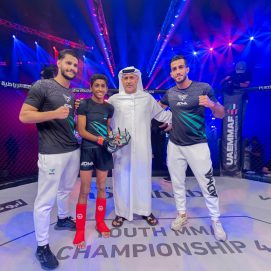 و شهدت بطولة الفنون القتالية المختلطة الرابعة للناشئين تتويج علي النجار بطلا للإمارات لفئة الناشئين تحت 14 سنة لوزن أقل من 40 كجم بعد تغلبه في النزال النهائي على اللاعب راكان اليماحي.