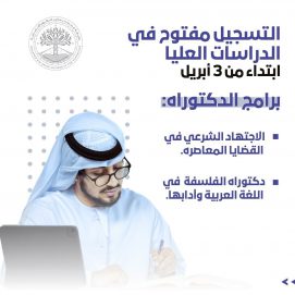 أعلنت جامعة محمد بن زايد للعلوم الإنسانية، عن فتح باب التقديم للدراسات العليا في برنامجي الماجستير والدكتوراه في اللغة العربية وآدابها والدراسات الإسلامية، اعتبارا من اليوم وحتى 30 يونيو المقبل عبر موقعها الإلكتروني.