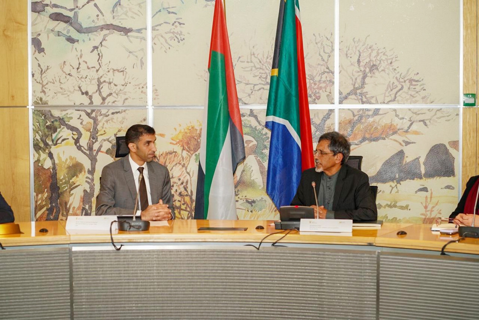 وبحث معالي الدكتور ثاني الزيودي سبل تعزيز آفاق التعاون بين الإمارات وجنوب أفريقيا في المجالات والقطاعات ذات الاهتمام المشترك، وذلك ضمن سلسلة من اللقاءات الوزارية الثنائية مع ثلاثة وزراء في حكومة جنوب أفريقيا هم كل من معالي إبراهيم باتيل وزير التجارة والصناعة والتنافسية، و معالي برافين جوردهان وزير المشاريع العامة، ومعالي باربرا دالاس كريسي وزيرة وزيرة البيئة والغابات والصيد.