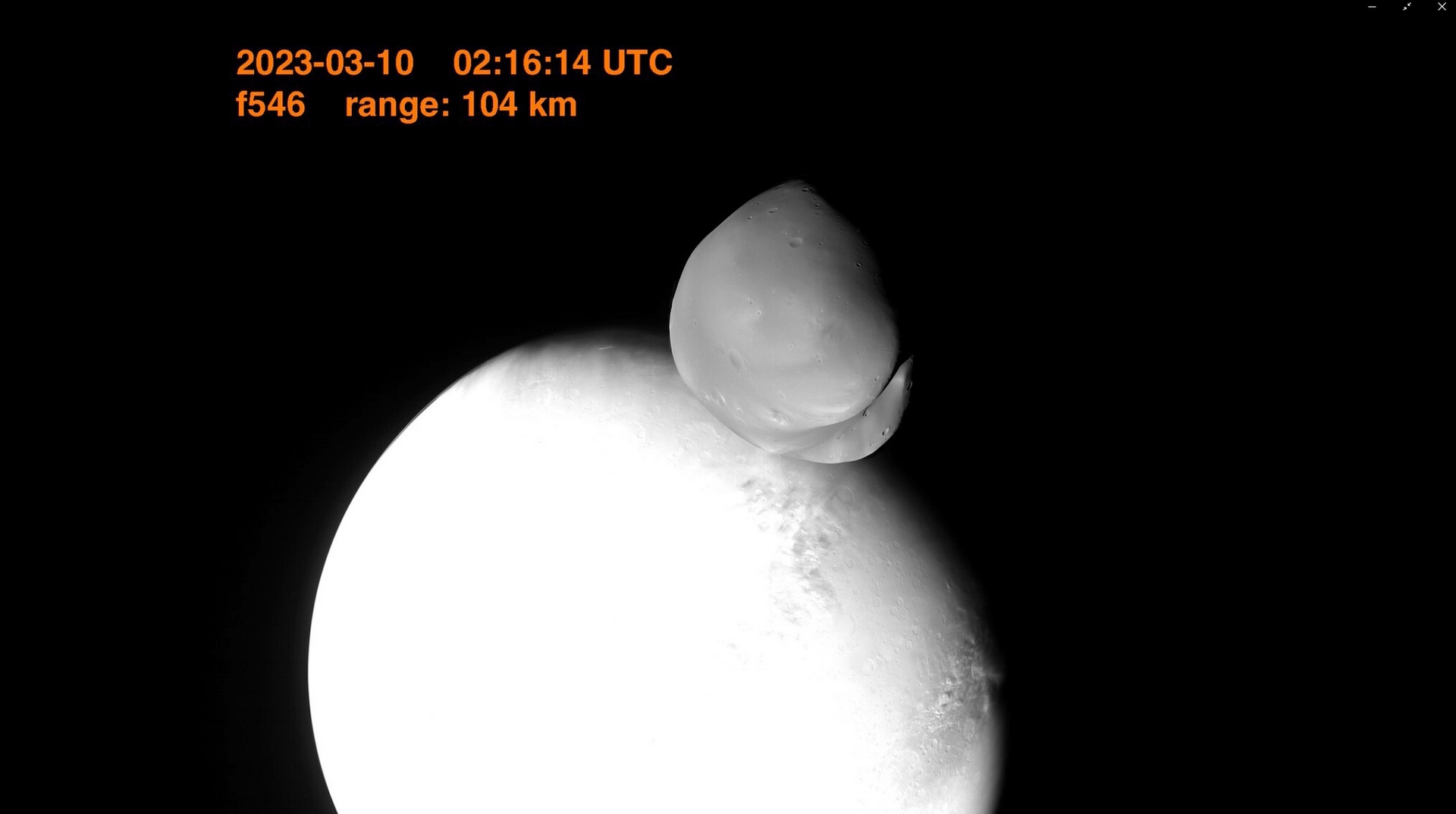 وكشف الفريق العلمي لمشروع الإمارات لاستكشاف المريخ “مسبار الأمل” عن سلسلة من البيانات الجديدة لقمر المريخ الأصغر “ديموس” والتي تم التقاطها باستخدام الأجهزة العلمية الثلاث للمسبار خلال مروره لأقرب نقطة من القمر على مسافة تقارب 100 كيلومتر فقط، والتي تعد الأقرب لمركبة فضائية منذ مهمة “فايكنغ” عام 1977.