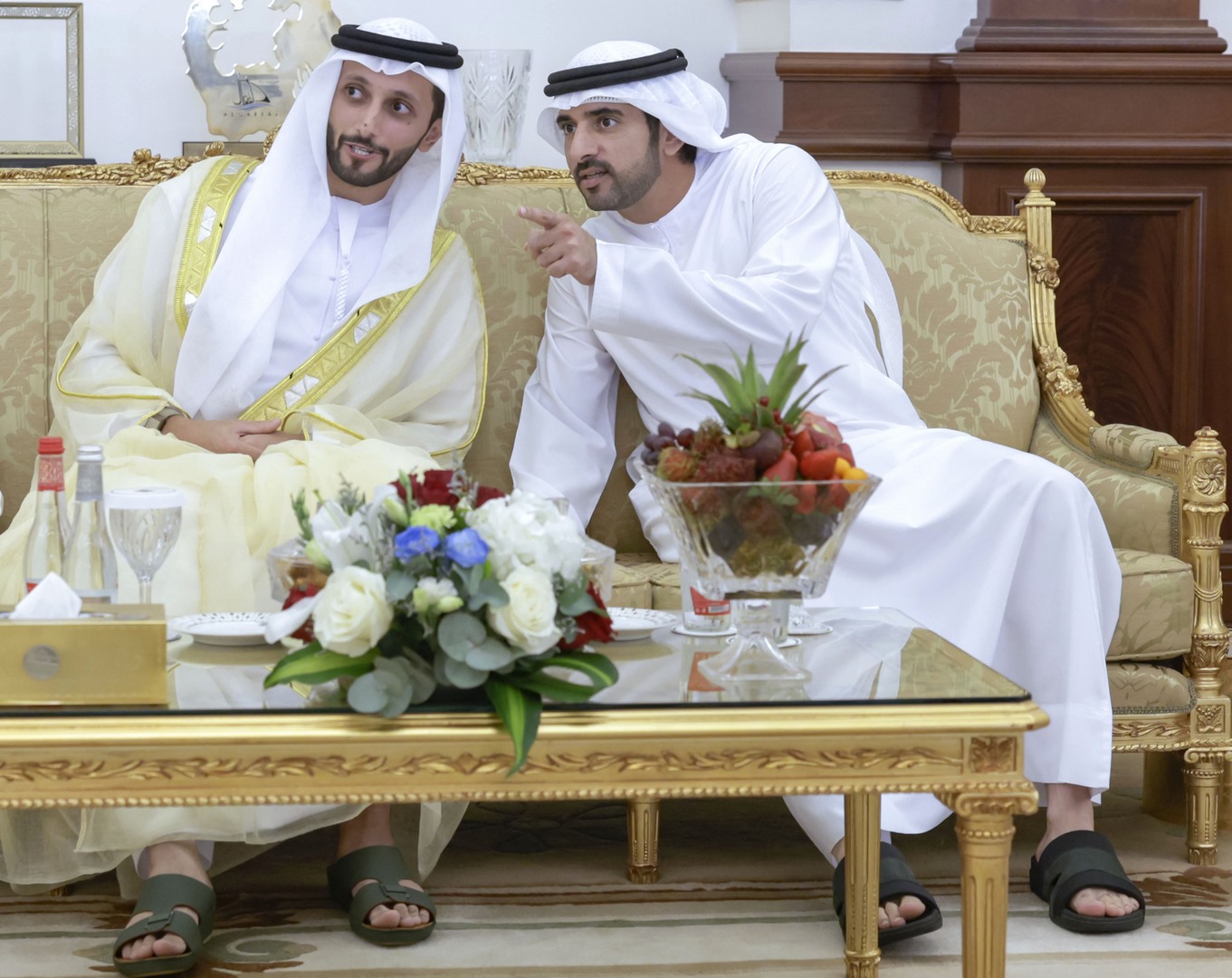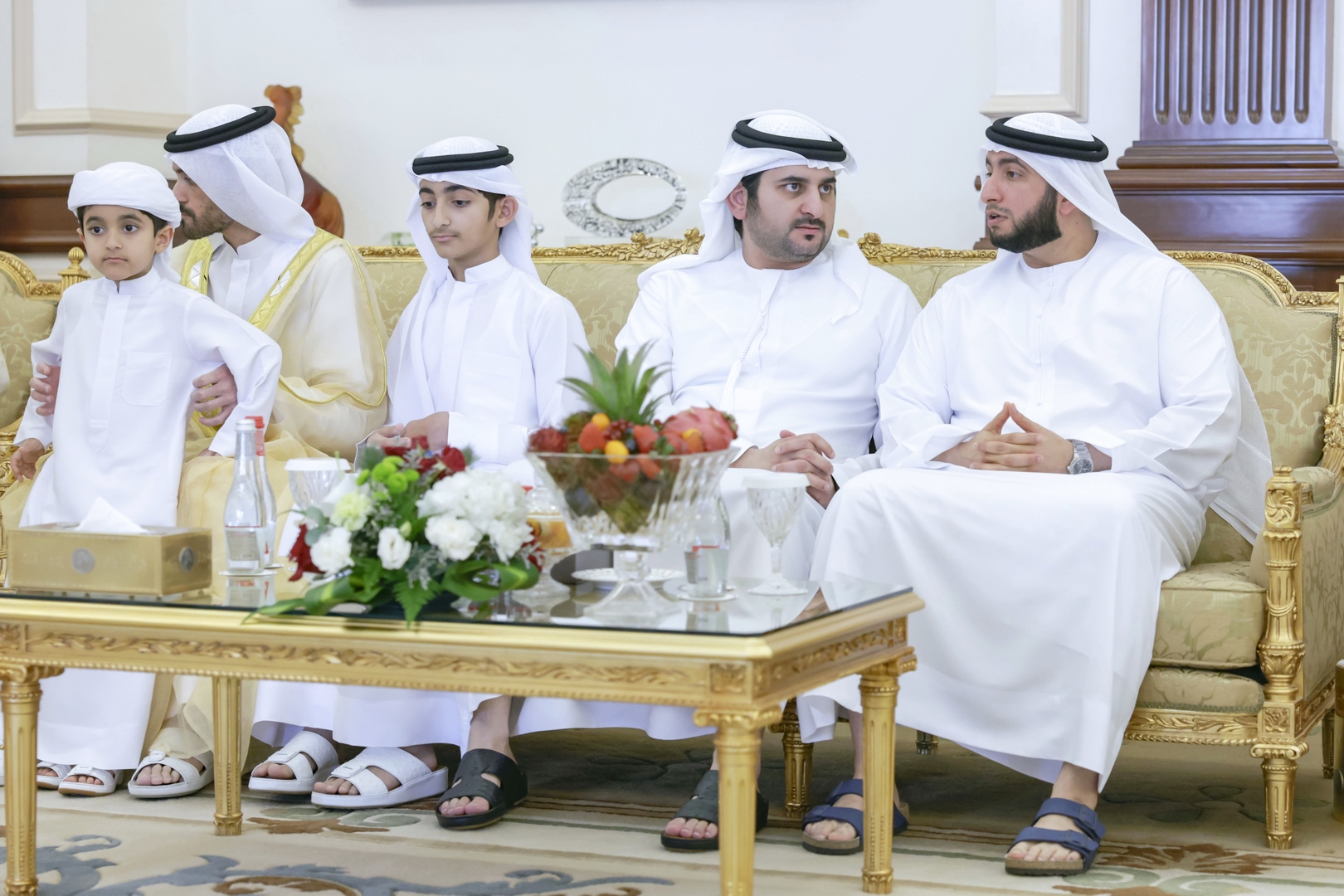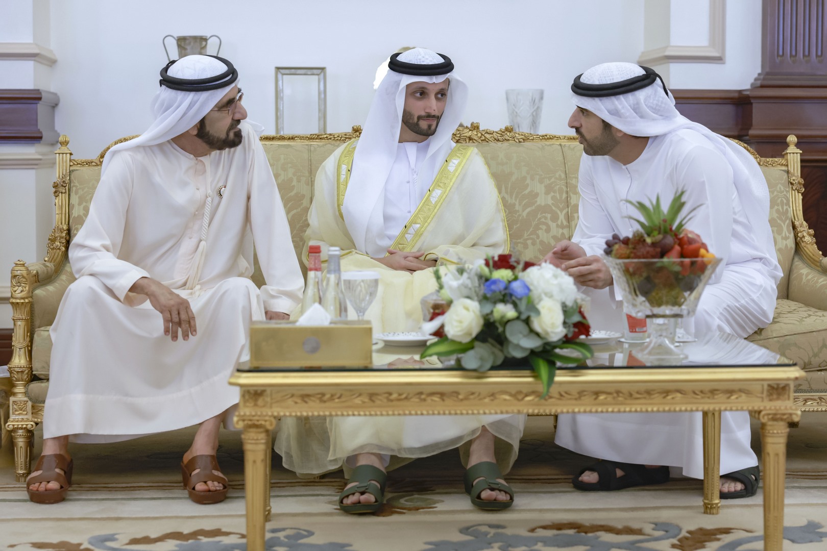 حضر صاحب السمو الشيخ محمد بن راشد آل مكتوم نائب رئيس الدولة رئيس مجلس الوزراء حاكم دبي “رعاه الله”، أمس الثلاثاء يرافقه سمو الشيخ حمدان بن محمد بن راشد آل مكتوم ولي عهد دبي وسمو الشيخ مكتوم بن محمد بن راشد آل مكتوم نائب حاكم دبي نائب رئيس مجلس الوزراء وزير المالية، وسمو الشيخ أحمد بن محمد بن راشد آل مكتوم، رئيس مجلس دبي للإعلام، وعدد من الشيوخ، حفل الاستقبال الذي أقيم، بمناسبة زفاف الشيخ مكتوم بن ماجد بن عبيد آل مكتوم نجل المغفور له الشيخ ماجد بن عبيد آل مكتوم على كريمة المغفور له الشيخ حمدان بن راشد آل مكتوم.