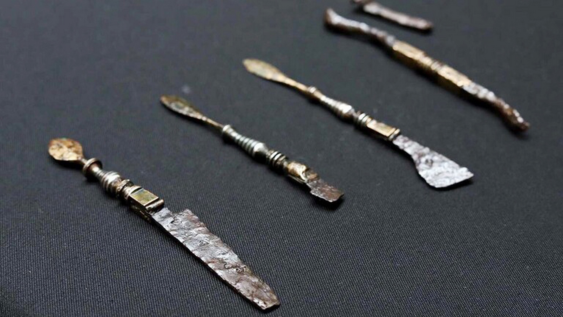 ويضيف الموقع: من ضمن الأدوات الجراحية التي عثر عليها العلماء في القبر مشارط مصنوعة من سبائك نحاسية مطلية بالفضة وشفرات فولاذية قابلة للاستبدال، وملاقط وإبر وحجر خاص، ربما كان يستخدم لخلط مكونات الأدوية.