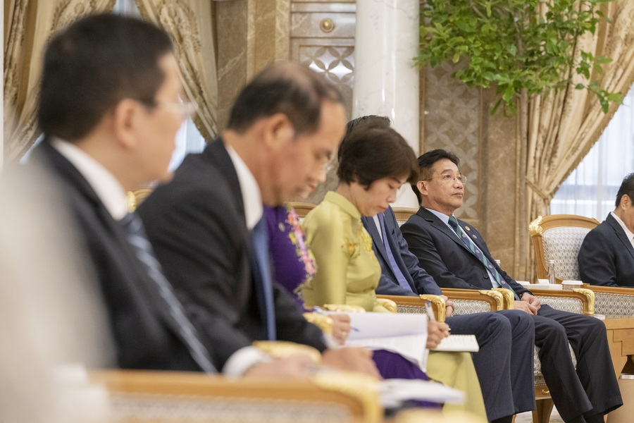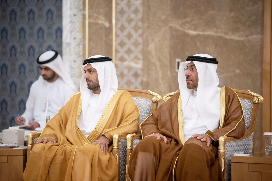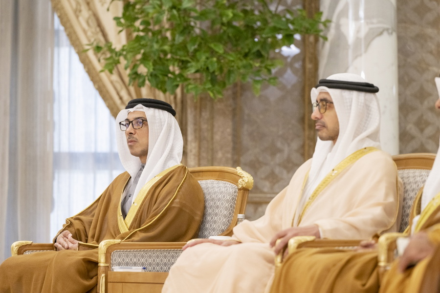 حضر اللقاء.. سمو الشيخ منصور بن زايد آل نهيان نائب رئيس الدولة نائب رئيس مجلس الوزراء وزير ديوان الرئاسة وسمو الشيخ عبد الله بن زايد آل نهيان وزير الخارجية والتعاون الدولي وسمو الشيخ حمدان بن محمد بن زايد آل نهيان ومعالي الشيخ محمد بن حمد بن طحنون آل نهيان مستشار الشؤون الخاصة في ديوان الرئاسة ومعالي الدكتور أنور بن محمد قرقاش المستشار الدبلوماسي لصاحب السمو رئيس الدولة ومعالي سهيل بن محمد فرج فارس المزروعي وزير الطاقة والبنية التحتية ومعالي عبد الله بن طوق المري وزير الاقتصاد ومعالي شما بنت سهيل بن فارس المزروعي وزيرة تنمية المجتمع ومعالي سارة بنت يوسف الأميري وزيرة دولة للتعليم العام والتكنولوجيا المتقدمة ومعالي أحمد بن علي محمد الصايغ وزير دولة.