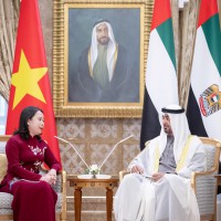 جاء ذلك خلال استقبال سموه أمس في قصر الوطن في أبوظبي نائبة الرئيس الفيتنامي التي تقوم بزيارة رسمية إلى الدولة .. ورحب سموه بزيارة الضيفة وحملها تهنئته وتحياته إلى فخامة الرئيس فو فان ثونج بمناسبة توليه رئاسة جمهورية فيتنام متطلعاً إلى أن يسهم هذا اللقاء في دفع العلاقات الثنائية بين البلدين إلى الأمام.