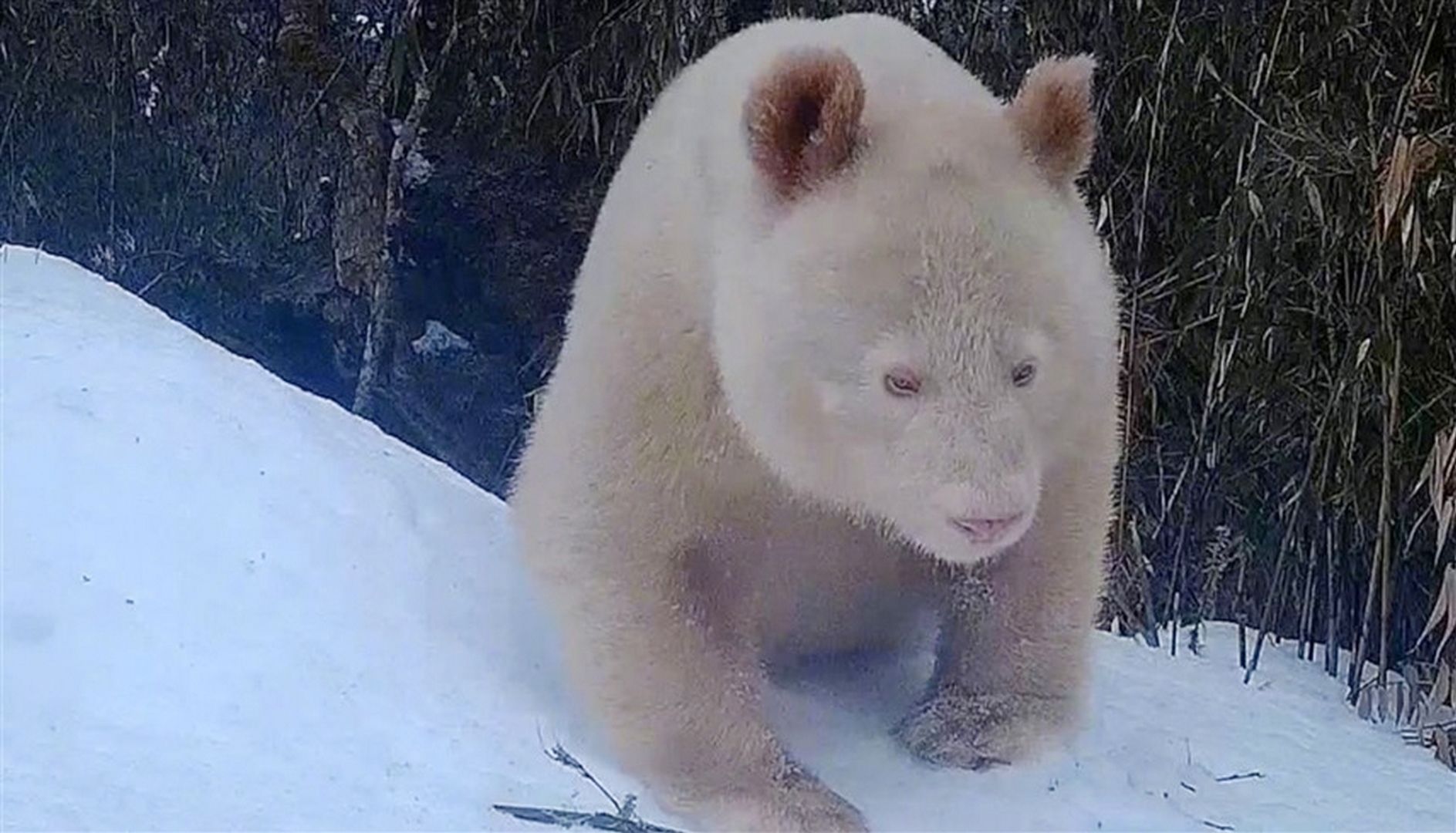 وأفادت محطة CCTV الحكومية مساء أمس الأول السبت، أن لقطات كاميرا تعمل بالأشعة تحت الحمراء، رصدت حيواناً أبيض بالكامل داخل محمية وولونغ الطبيعية الوطنية في مقاطعة سيتشوان.