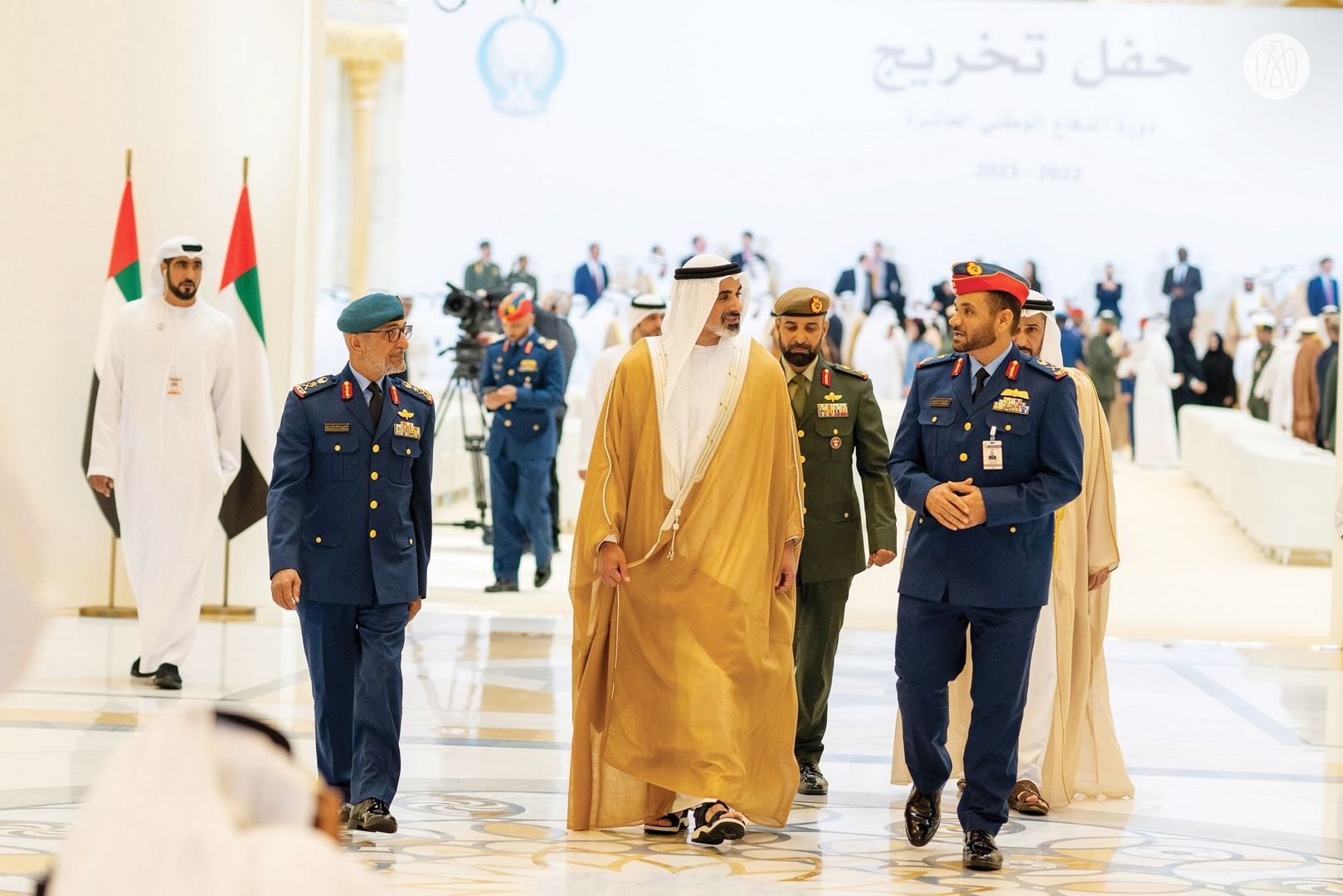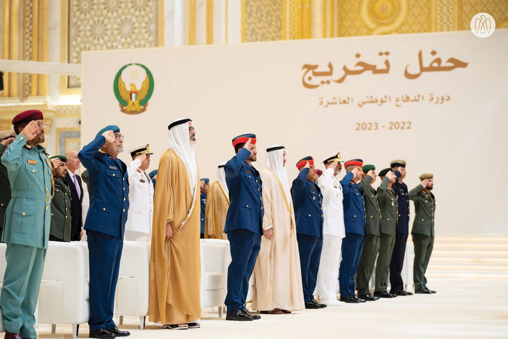 شهد سمو الشيخ خالد بن محمد بن زايد آل نهيان، ولي عهد أبوظبي رئيس المجلس التنفيذي لإمارة أبوظبي، حفل تخريج الدفعة العاشرة لدورة الدفاع الوطني “2022-2023″، الذي أقيم أمس في قصر الوطن بأبوظبي.