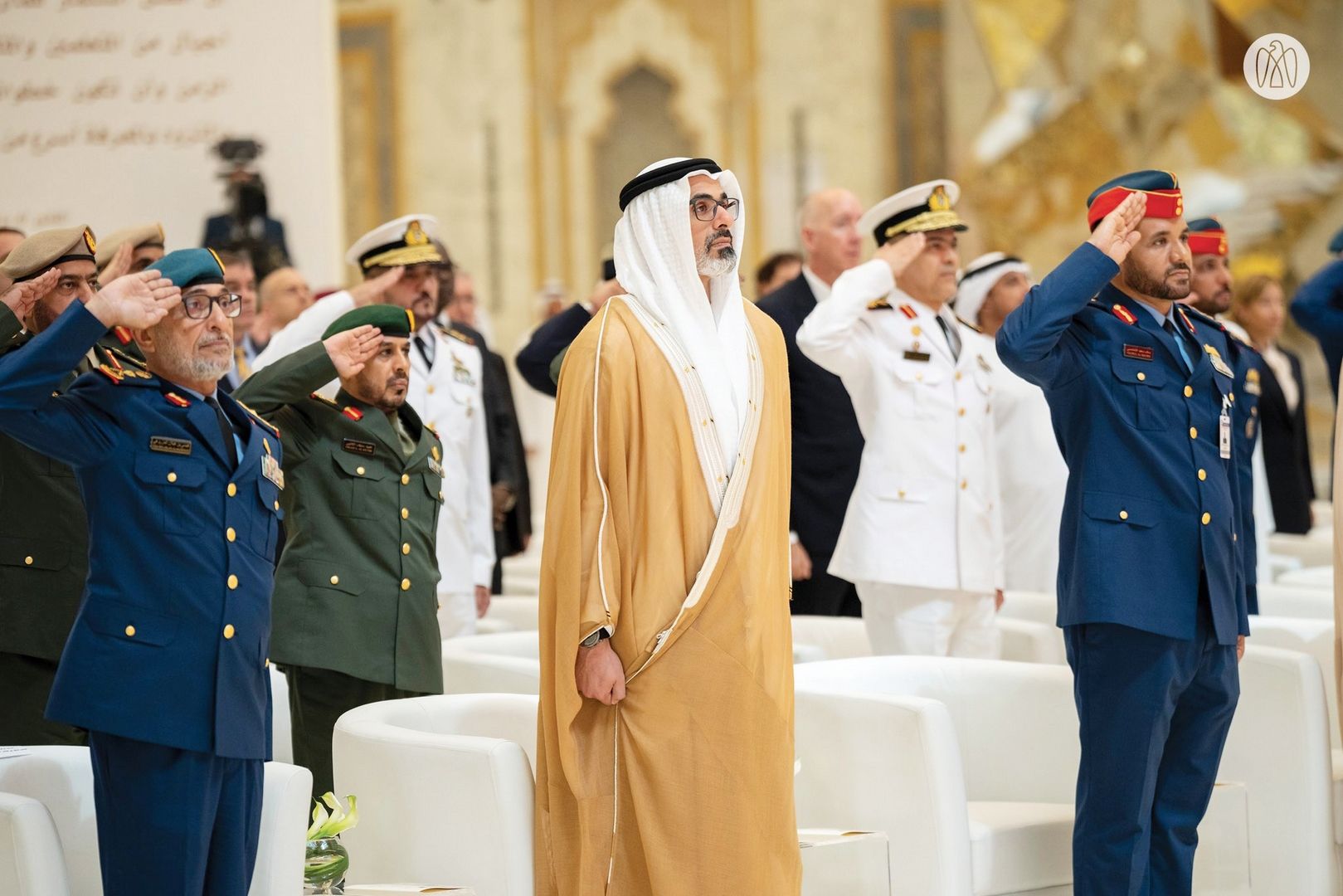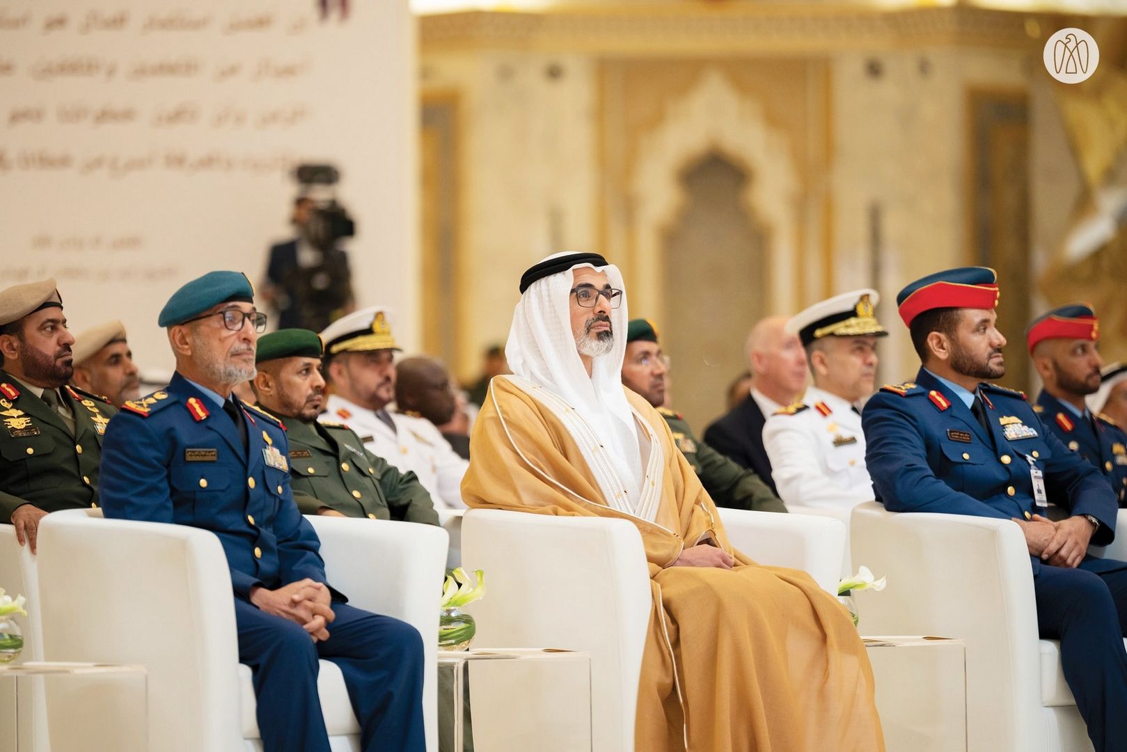 ورافق سموّه، خلال هذا الحفل، كلّ من معالي الفريق الركن عيسى سيف بن عبلان المزروعي، رئيس أركان القوات المسلحة، وسعادة اللواء ركن سالم بن حرمل الشامسي، قائد كلية الدفاع الوطني.