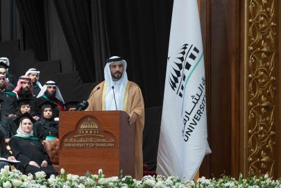 وقال سموه “ أقف بينكم اليوم في أولى حفلات التخريج هذا الموسم، لأطوي معكم صفحةً مشرقةً من تاريخ جامعة الشارقة، حيث نكمل بكم دفعة اليوبيل الفضي، فأنتم مِسكُ ختام 25 عاماً من الإنجاز المتواصل، ولنبدأ اليوم كتابة عهد جديد يواكب سرعة تطور العلوم والتكنولوجيا على مستوى العالم، في ظل هيمنة الذكاء الاصطناعي، ولن نقف مكتوفي الأيدي بل نعاهدكم بأن نكون في ركب الأمم المتقدمة تنفيذاً لرؤى صاحب السمو الشيخ الدكتور سلطان بن محمد القاسمي، عضو المجلس الأعلى حاكم الشارقة، ومؤسس جامعة الشارقة”.