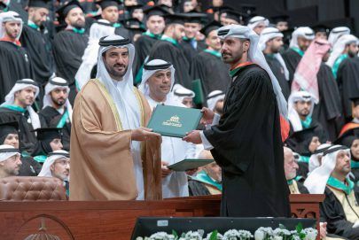 واختتم سموه كلمته بتوصية الخريجين والخريجات بالمضي في طلب العلم والمعرفة دوماً لأن العلم هو الحياة، وقال ” بالأصالة عن نفسي ونيابةً عن أعضاء مجلس الأمناء وأسرة جامعة الشارقة، أتقدم لكم مرةً أخرى بالتهنئة متمنياً منكم مواصلة نهل العلوم والمعرفة من منابعها، “فقم بعلمٍ ولا تطلب به بدلا .. فالناس موتى وأهل العلم أحياءُ”، راجياً من المولى عز وجل لكم التوفيق والنجاح”.