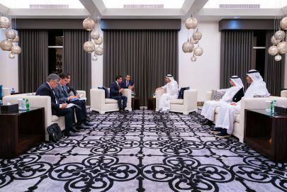 حضر اللقاء ، معالي سهيل بن محمد فرج فارس المزروعي وزير الطاقة والبنية التحتية وسعادة سعيد مبارك الهاجري مساعد الوزير للشؤون الاقتصادية والتجارية في وزارة الخارجية.وام