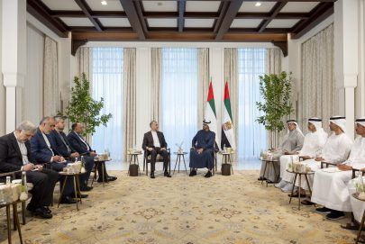 حضر اللقاء.. سمو الشيخ منصور بن زايد آل نهيان نائب رئيس الدولة نائب رئيس مجلس الوزراء وزير ديوان الرئاسة وسمو الشيخ عبدالله بن زايد آل نهيان وزير الخارجية وسمو الشيخ حمدان بن محمد بن زايد آل نهيان ومعالي علي بن حماد الشامسي الأمين العام للمجلس الأعلى للأمن الوطني ومعالي خليفة شاهين المرر وزير دولة وسعادة سيف محمد الزعابي سفير الدولة لدى إيران.وام