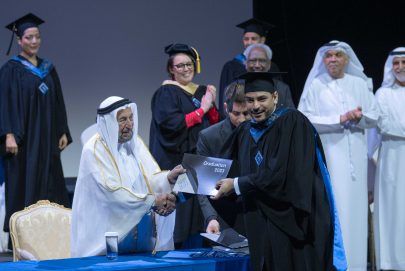 وتفضل صاحب السمو حاكم الشارقة بتسليم الخريجين شهاداتهم الدراسية، ملتقطاً معهم الصور التذكارية، ومهنئاً إياهم التفوق والنجاح ومتمنياً لهم التوفيق في حياتهم العملية.