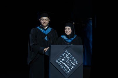 وأضاف المدير التنفيذي، قائلاً //كانت مسيرتنا في الأكاديمية مليئة بالتحديات المهنية والشخصية على السواء، ومع ذلك، ها نحن نحتفل اليوم، بتخرج أول دفعة من أكاديمية الشارقة للفنون الأدائية. لقد عملت الأكاديمية منذ نشأتها على استقطاب أفضل الخبرات الفنية والعملية والتدريسية والإدارية من الكوادر المؤهلة لقيادة العمل فيها، من جميع أنحاء العالم، شكراً لجميع أعضاء هيئة التدريس والموظفين الحاليين والسابقين على مساعدتنا في جعل هذه الرحلة ممكنة، شكراً أيضاً لطلبتنا، فلولاكم ما وصلنا إلى يوم التخرج //.