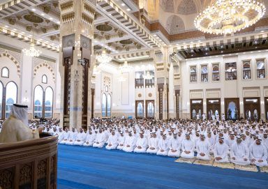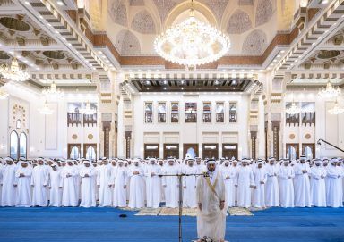 وفي الختام، دعا فضيلة خطيب صلاة عيد الأضحى، الله العلي القدير أن يحفظ دولة الإمارات قيادة وشعباً، وأن يعُم عليها الخير وسائر بلاد المسلمين والعالم، وأن ينعم على دولتنا وقيادتنا الرشيدة وشعبها الكريم بدوام التقدم والرقي والازدهار، مبتهلاً إلى المولى عزّ وجلّ أن يديم على صاحب السمو الشيخ محمد بن زايد آل نهيان رئيس الدولة “حفظه الله”، موفور الصحة والعافية، وأن يوفقه وصاحب السمو الشيخ محمد بن راشد آل مكتوم نائب رئيس الدولة رئيس مجلس الوزراء حاكم دبي “رعاه الله”، لما فيه صالح الوطن والمواطن، وأن يديم على إخوانهما أصحاب السمو الشيوخ أعضاء المجلس الأعلى للاتحاد حُكّام الإمارات نعمة الصحة والعافية وأن يسدّد خطاهم لما فيه خير البلاد والعباد.وام