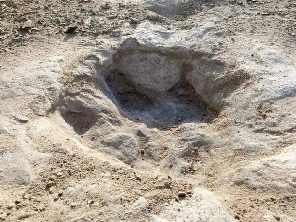 وجرى رصد آثار أقدام يعتقد أنها تعود إلى 110 ملايين سنة في متنزه وادي الديناصورات الحكومي بولاية تكساس. وعادة ما تكون الآثار مختبئة تحت الماء والطين في نهر بالوكسي، لكن الطقس الحار بشكل استثنائي جعلها مكشوفة.