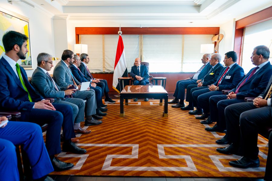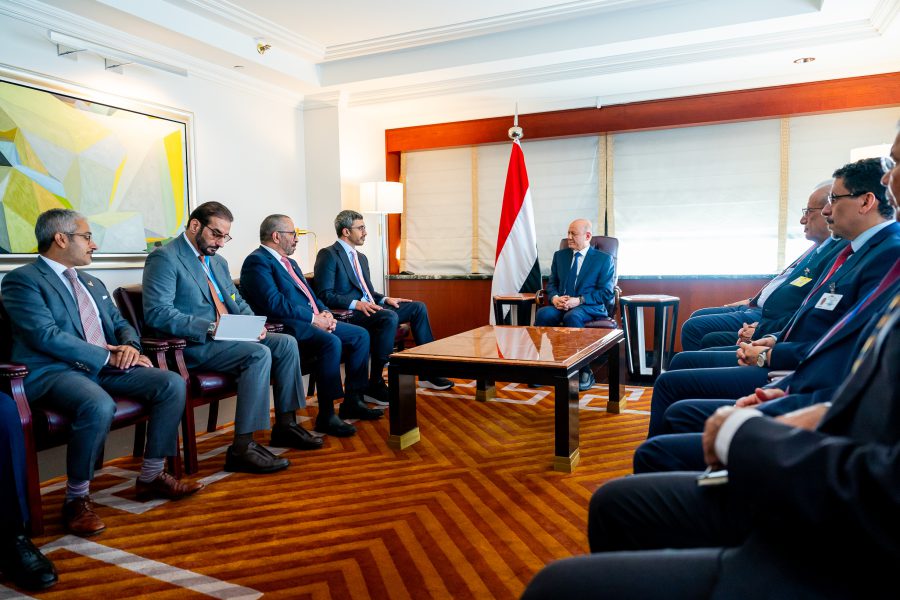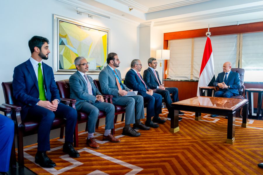 التقى سمو الشيخ عبدالله بن زايد آل نهيان وزير الخارجية، فخامة الدكتور رشاد العليمي رئيس مجلس القيادة الرئاسي في الجمهورية اليمنية الشقيقة ، وذلك على هامش أعمال الدورة الـ 78 من الجمعية العامة للأمم المتحدة في نيويورك.