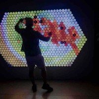 وتتسم معظم الأعمال بكونها تفاعلية، على غرار “كوانتوم جانغل” للألماني روبن باومغارتن، وهو عبارة عن لوحة لمسية كبيرة مصنوعة من 720 نابضاً و12 ألف مصباح “لِد” متعددة الألوان، تضيء تبعاً لحركة الأصابع على النوابض، بفضل برنامج حاسوبي يعيد إنتاج معادلة شرودنجر، أحد أسس فيزياء الكم.