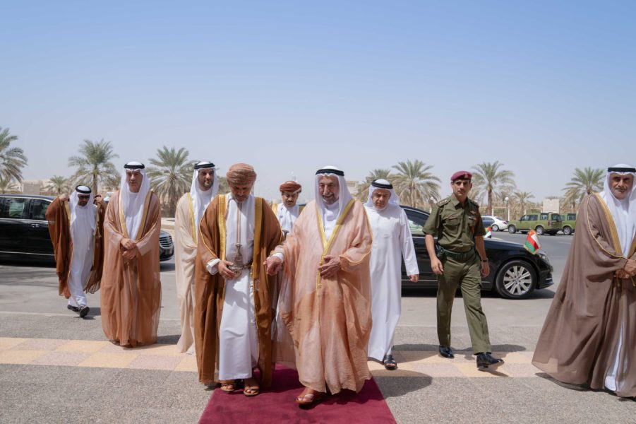 رافق صاحب السمو حاكم الشارقة وسمو نائب حاكم الشارقة خلال زيارة مركز جامعة السلطان قابوس الثقافي، كل من: معالي الدكتور عبدالله بن ناصر الحراصي وزير الإعلام العُماني، ومعالي محمد بن نخيرة الظاهري سفير الدولة لدى سلطنة عُمان الشقيقة، وسعادة عبدالله بن محمد العويس رئيس دائرة الثقافة، وسعادة محمد عبيد الزعابي رئيس دائرة التشريفات والضيافة.وام