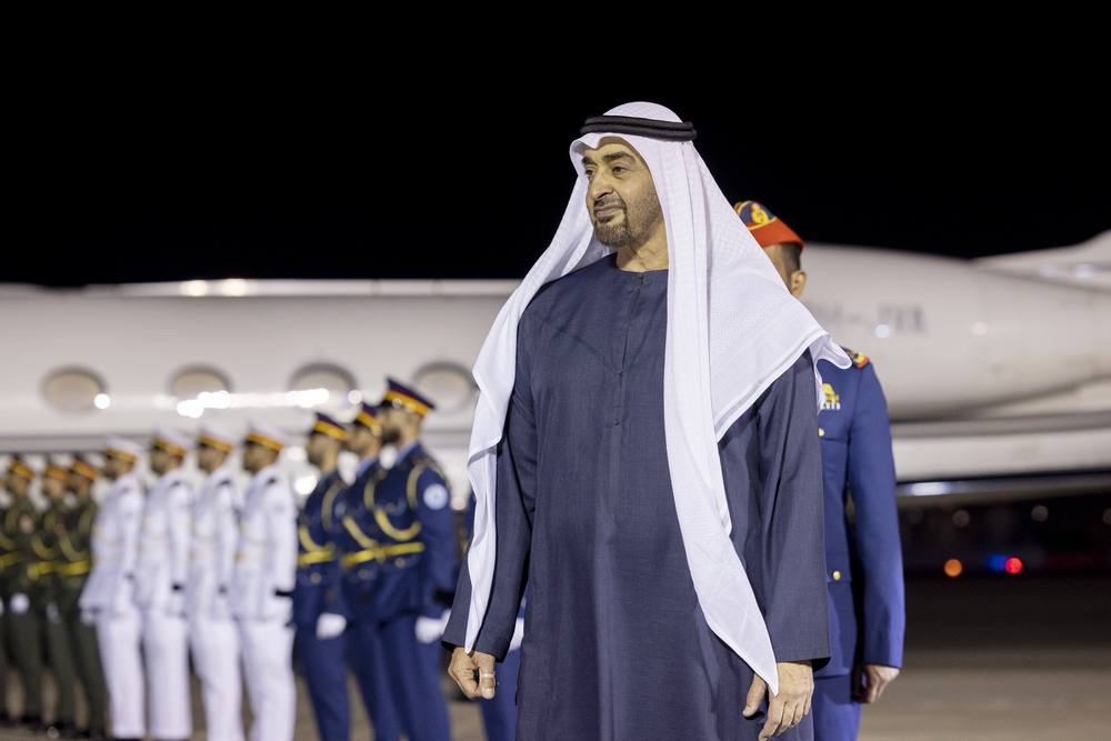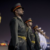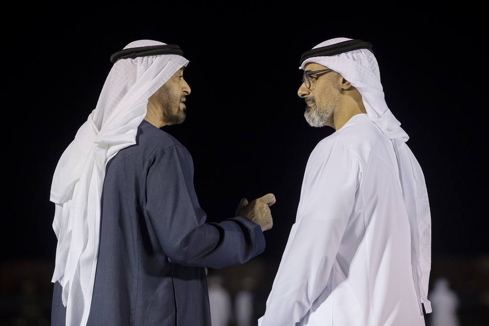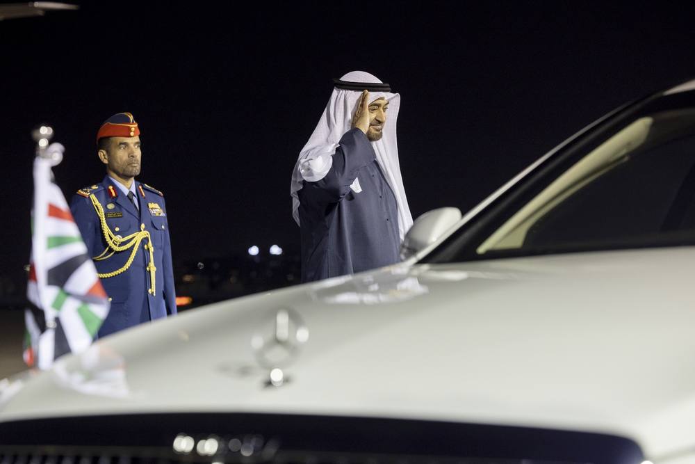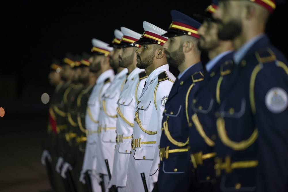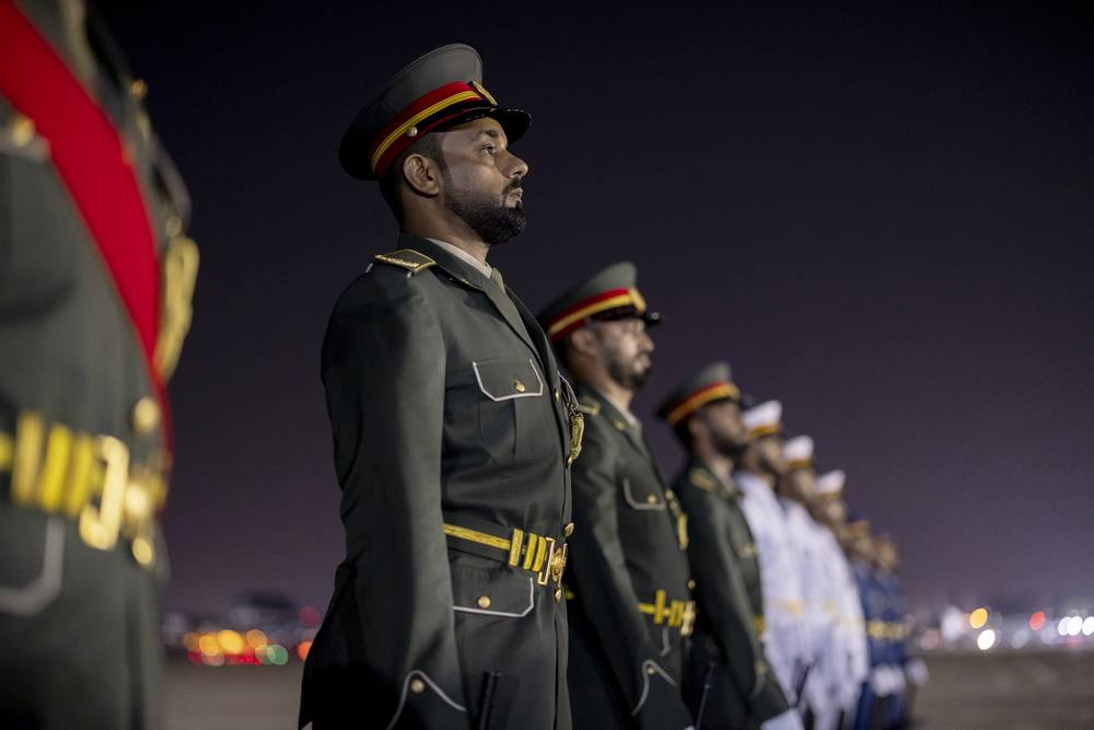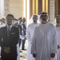 كما كان في الاستقبال.. سمو الشيخ خالد بن محمد بن زايد آل نهيان ولي عهد أبوظبي وسمو الشيخ حمدان بن محمد بن زايد آل نهيان ومعالي الشيخ محمد بن حمد بن طحنون آل نهيان مستشار الشؤون الخاصة في ديوان الرئاسة ومعالي حميد عبيد أبو شبص رئيس ديوان المحاسبة.