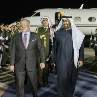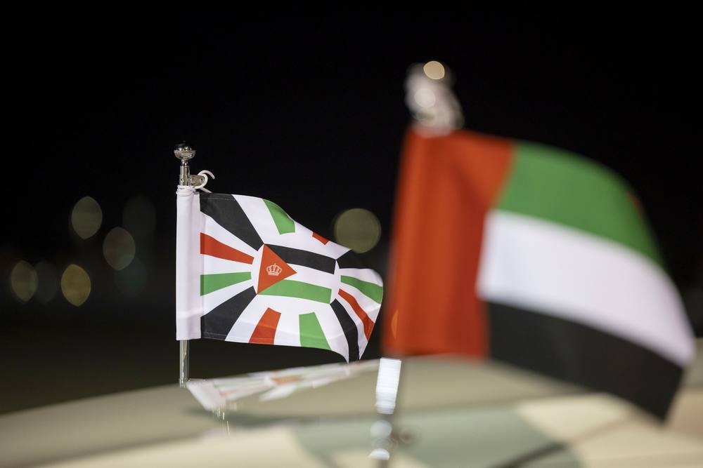 وقد رافقت طائرة ملك الأردن لدى دخولها أجواء دولة الإمارات، طائرات حربية احتفاء بزيارة جلالته وترحيباً به.