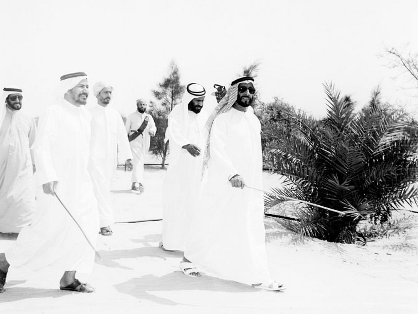 ومع تولى الوالد المؤسس الشيخ زايد، مقاليد حكم أبوظبي عام 1966، نجح في زراعة قسم كبير من الصحراء، ثم عمل جاهداً على مساعدة المزارعين، وتدريبهم على الزراعة، وترشيد استهلاك المياه، كما عمل على إنشاء السدود، وتحلية مياه البحر، وزراعة أشجار القرم.