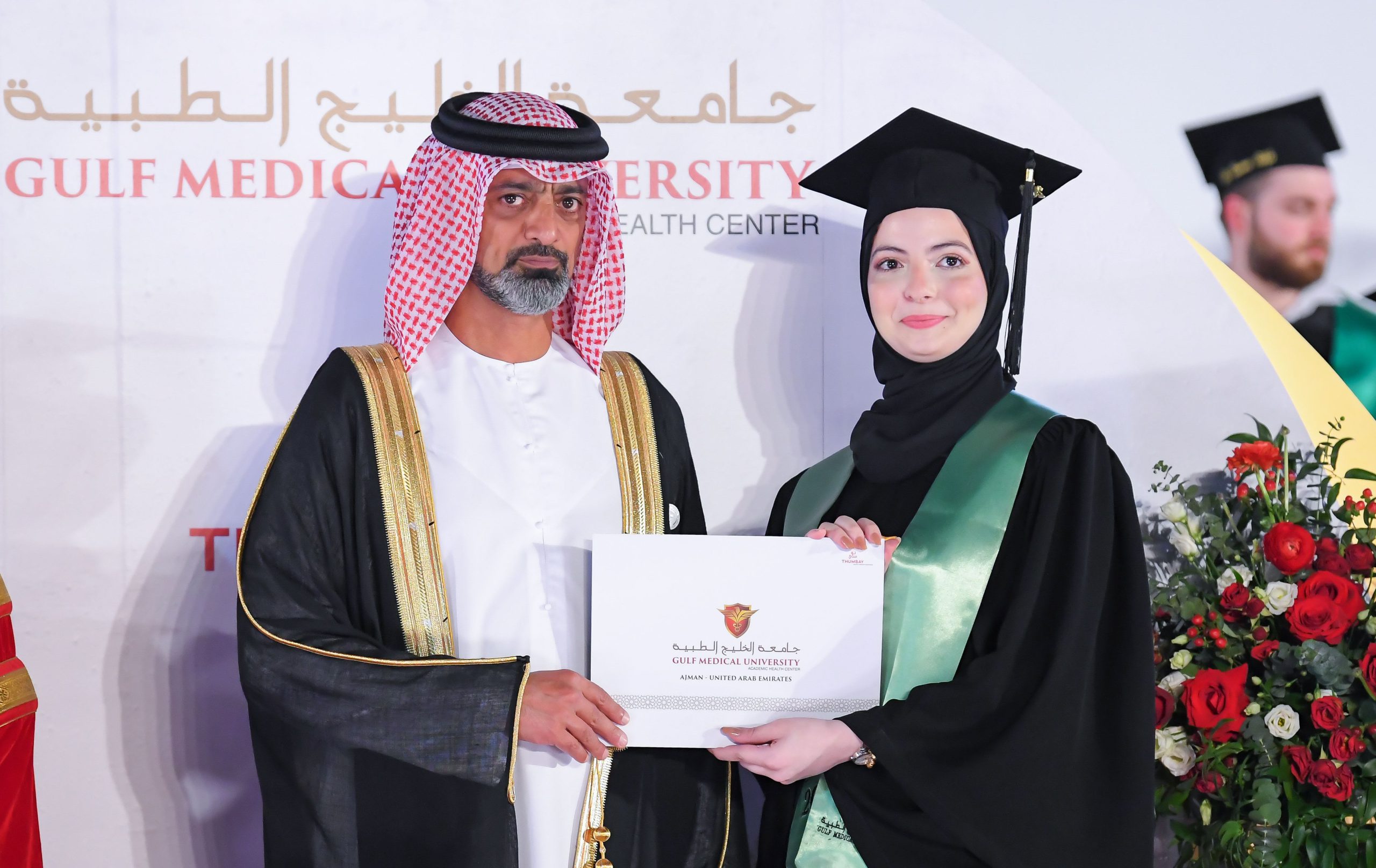 شهد سمو الشيخ عمار بن حميد النعيمي ولي عهد عجمان، حفل تخريج الدفعة الـ 20 من جامعة الخليج الطبية، الدفعة الأكبر في تاريخ الجامعة وذلك في مدينة ثومبي الطبية في عجمان.