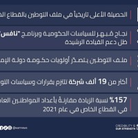ويشهد العام 2024 تطبيق قرار مجلس الوزراء بشأن توسيع قاعدة الشركات الخاصة المستهدفة بالتوطين، لتشمل الشركات التي يبلغ عددها أكثر من 12 ألفاً في 14 نشاطا اقتصاديا محدداً ويعمل فيها من 20 إلى 49 عاملاً، ومن المتوقع أن يوفر هذا القرار 12 ألف فرصة وظيفية للمواطنين سنوياً خلال عامي 2024 و2025.