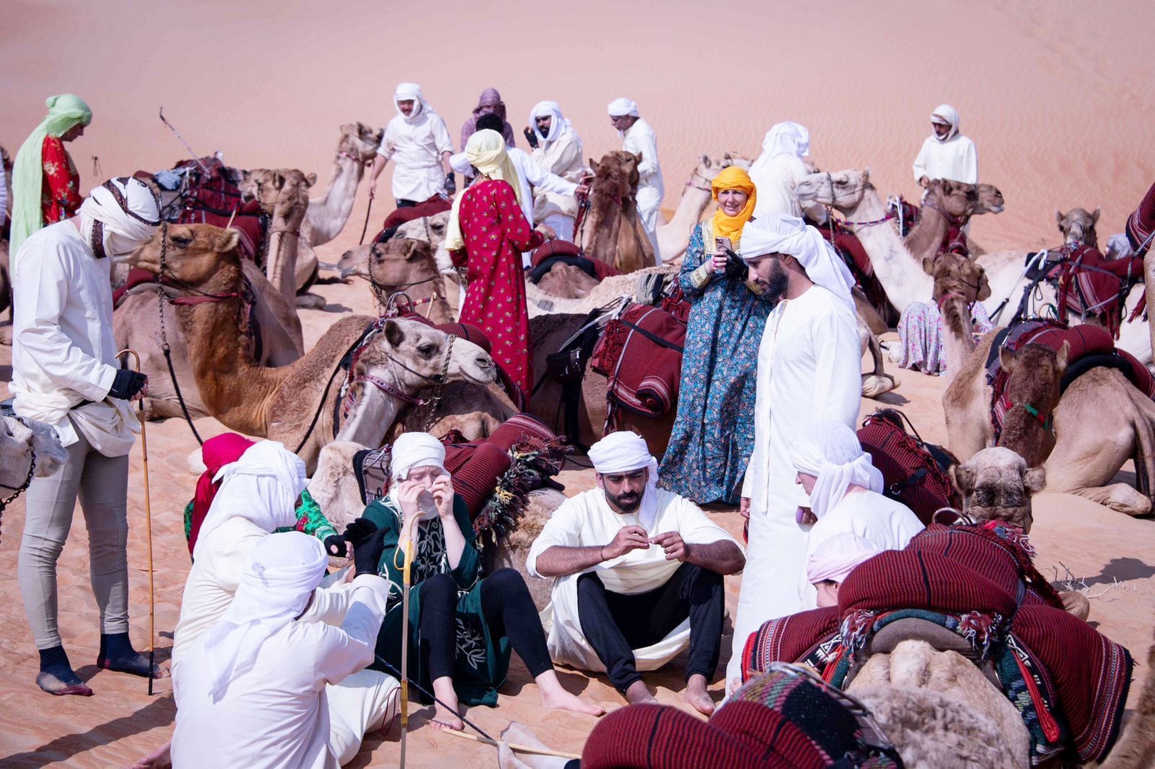 ومن جانبها قالت المشاركة المكسيكية “نادية كورتيس”، التي ظلت مبتهجة ترتدي الزي النسائي الإماراتي: ” أعتز كثيرا بفكرة التخييم في صحراء الإمارات لمدة 12 يوماً ورغم الصعوبات في امتطاء الهجن واحكام قبضتي لمواصلة السير مع القافلة تطلب الأمر الكثير من المجهود البدني، ،و جمال الصحراء والاندماج مع الطبيعة والعودة بالزمن إلى الوراء أيام الأجداد هي مشاهد لا يمكن ان تصفها الكلمات”.