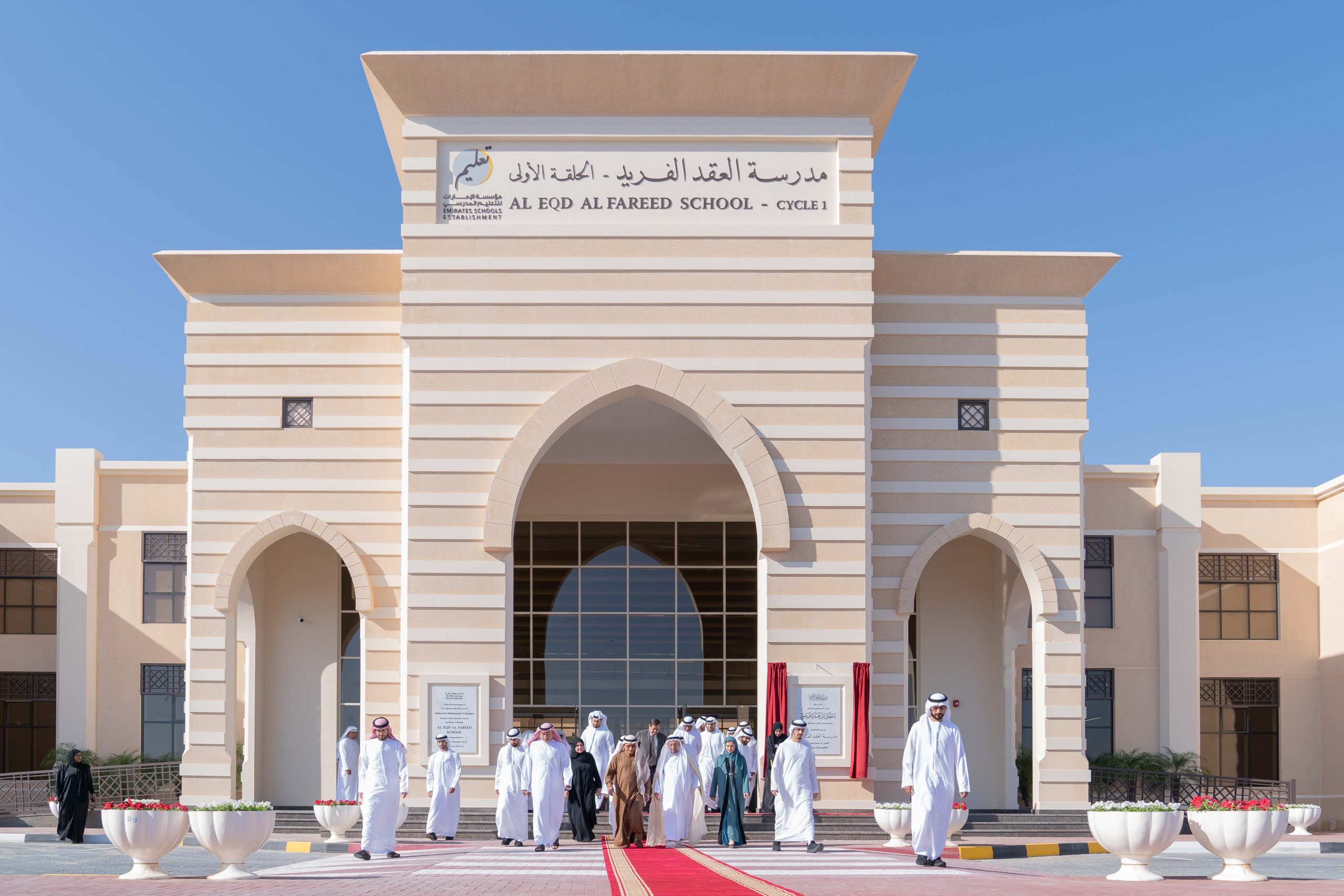رافق صاحب السمو حاكم الشارقة خلال افتتاح المدرسة كل من الشيخ سعيد بن صقر القاسمي، نائب رئيس مكتب سمو الحاكم بمدينة خورفكان، ومعالي سارة بنت يوسف الأميري، وزيرة دولة للتعليم العام والتكنولوجيا المتقدمة، رئيسة مؤسسة الإمارات للتعليم المدرسي، وعدد من كبار المسؤولين رؤساء الدوائر الحكومية.وام