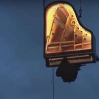 فنان سويسري يقدم عروضا موسيقية مميزة على بيانو معلق في الهواء