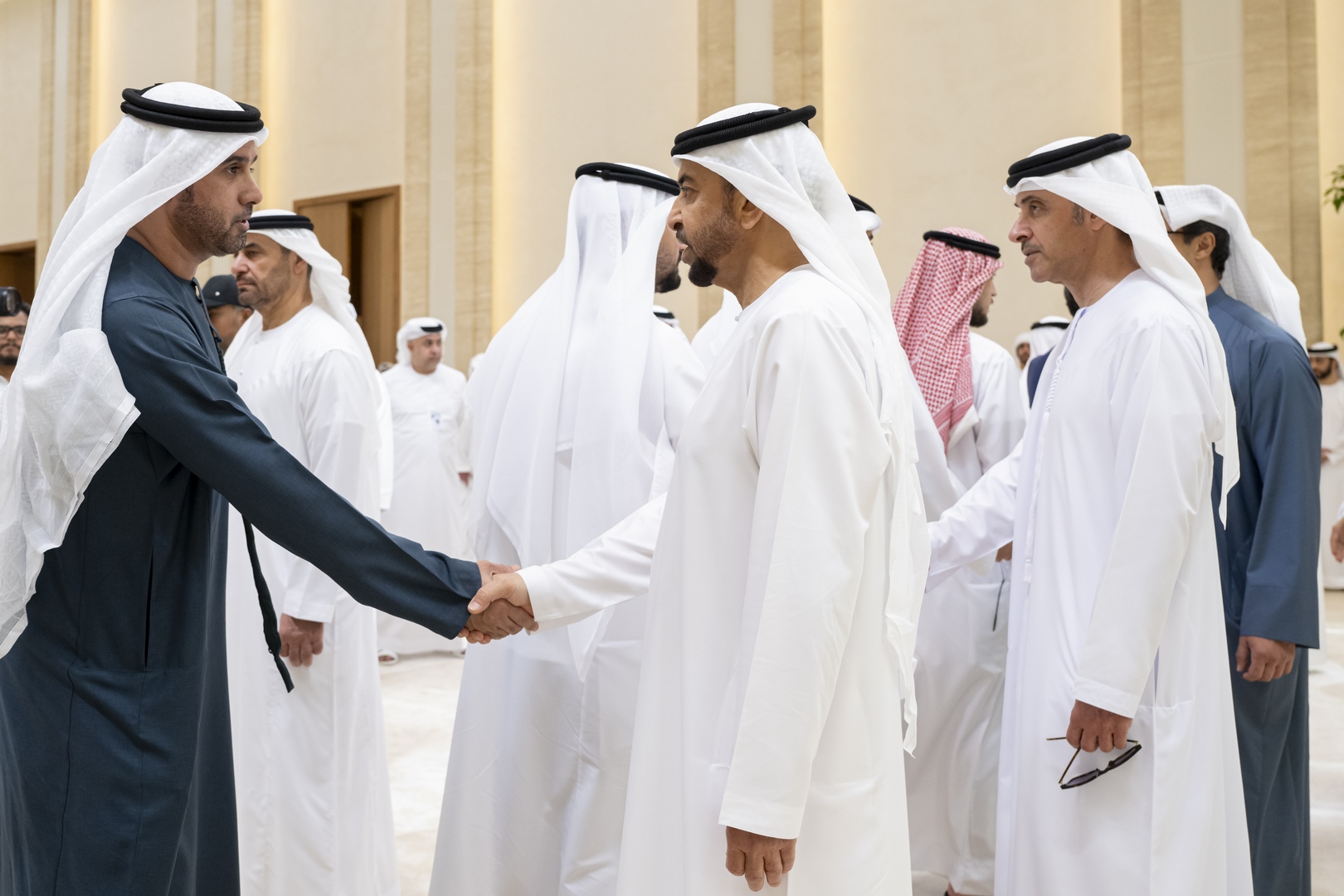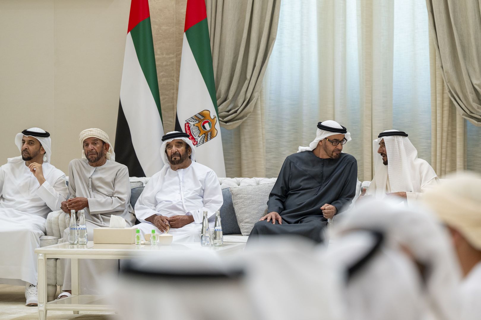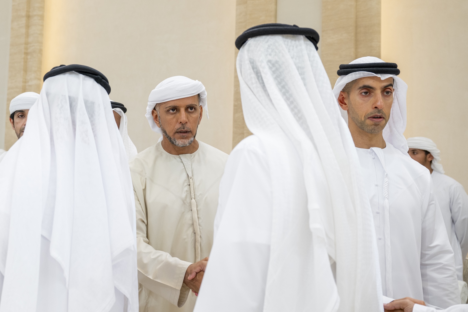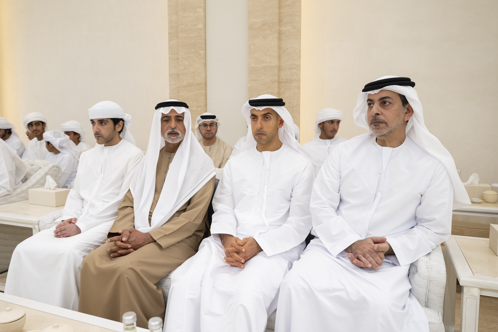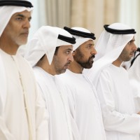 وتقبل التعازي إلى جانب سموه .. سمو الشيخ منصور بن زايد آل نهيان نائب رئيس الدولة نائب رئيس مجلس الوزراء رئيس ديوان الرئاسة وسمو الشيخ هزاع بن زايد آل نهيان نائب حاكم إمارة أبوظبي وسمو الشيخ طحنون بن زايد آل نهيان نائب حاكم إمارة أبوظبي مستشار الأمن الوطني وسمو الشيخ حمدان بن زايد آل نهيان ممثل الحاكم في منطقة الظفرة وسمو الشيخ سيف بن محمد آل نهيان وسمو الشيخ سرور بن محمد آل نهيان وسمو الشيخ نهيان بن زايد آل نهيان رئيس مجلس أمناء مؤسسة زايد بن سلطان آل نهيان للأعمال الخيرية والإنسانية والفريق سمو الشيخ سيف بن زايد آل نهيان نائب رئيس مجلس الوزراء وزير الداخلية وسمو الشيخ ذياب بن زايد آل نهيان وسمو الشيخ عبدالله بن زايد آل نهيان وزير الخارجية وسمو الشيخ عمر بن زايد آل نهيان نائب رئيس مجلس أمناء مؤسسة زايد بن سلطان آل نهيان للأعمال الخيرية والإنسانية وسمو الشيخ خالد بن زايد آل نهيان رئيس مجلس إدارة مؤسسة زايد العليا لأصحاب الهمم وسمو الشيخ الدكتور سلطان بن خليفة آل نهيان مستشار صاحب السمو رئيس الدولة وسمو الشيخ محمد بن خليفة آل نهيان وسمو الشيخ ذياب بن محمد بن زايد آل نهيان نائب رئيس ديوان الرئاسة للشؤون التنموية وأسر الشهداء وسمو الشيخ حمدان بن محمد بن زايد آل نهيان وسمو الشيخ زايد بن محمد بن زايد آل نهيان ومعالي الشيخ محمد بن حمد بن طحنون آل نهيان مستشار الشؤون الخاصة في ديوان الرئاسة وعدد من الشيوخ وكبار المسؤولين.وام