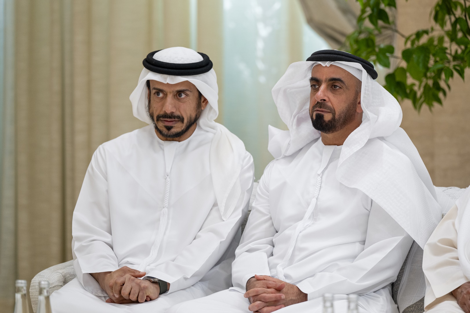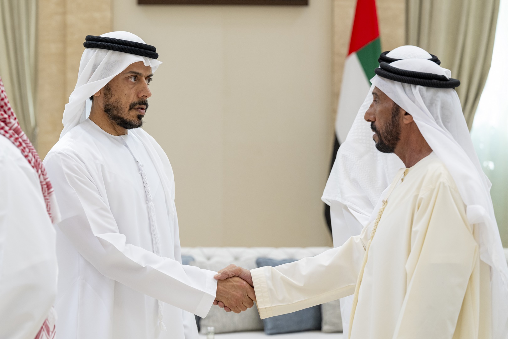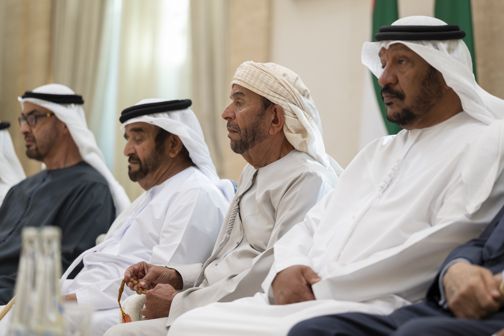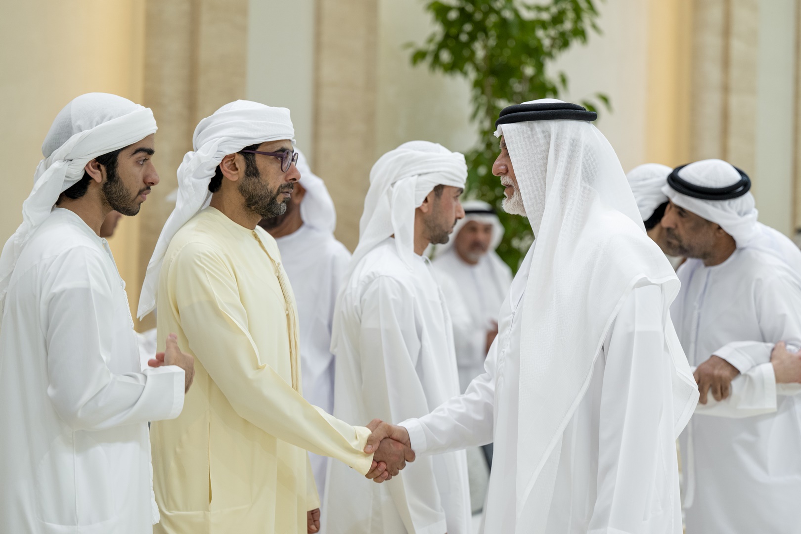 وتقبل التعازي إلى جانب سموه .. سمو الشيخ منصور بن زايد آل نهيان نائب رئيس الدولة نائب رئيس مجلس الوزراء رئيس ديوان الرئاسة وسمو الشيخ هزاع بن زايد آل نهيان نائب حاكم إمارة أبوظبي وسمو الشيخ طحنون بن زايد آل نهيان نائب حاكم إمارة أبوظبي مستشار الأمن الوطني وسمو الشيخ حمدان بن زايد آل نهيان ممثل الحاكم في منطقة الظفرة وسمو الشيخ سيف بن محمد آل نهيان وسمو الشيخ سرور بن محمد آل نهيان وسمو الشيخ نهيان بن زايد آل نهيان رئيس مجلس أمناء مؤسسة زايد بن سلطان آل نهيان للأعمال الخيرية والإنسانية والفريق سمو الشيخ سيف بن زايد آل نهيان نائب رئيس مجلس الوزراء وزير الداخلية وسمو الشيخ ذياب بن زايد آل نهيان وسمو الشيخ عبدالله بن زايد آل نهيان وزير الخارجية وسمو الشيخ عمر بن زايد آل نهيان نائب رئيس مجلس أمناء مؤسسة زايد بن سلطان آل نهيان للأعمال الخيرية والإنسانية وسمو الشيخ خالد بن زايد آل نهيان رئيس مجلس إدارة مؤسسة زايد العليا لأصحاب الهمم وسمو الشيخ الدكتور سلطان بن خليفة آل نهيان مستشار صاحب السمو رئيس الدولة وسمو الشيخ محمد بن خليفة آل نهيان وسمو الشيخ ذياب بن محمد بن زايد آل نهيان نائب رئيس ديوان الرئاسة للشؤون التنموية وأسر الشهداء وسمو الشيخ حمدان بن محمد بن زايد آل نهيان وسمو الشيخ زايد بن محمد بن زايد آل نهيان ومعالي الشيخ محمد بن حمد بن طحنون آل نهيان مستشار الشؤون الخاصة في ديوان الرئاسة وعدد من الشيوخ وكبار المسؤولين.وام