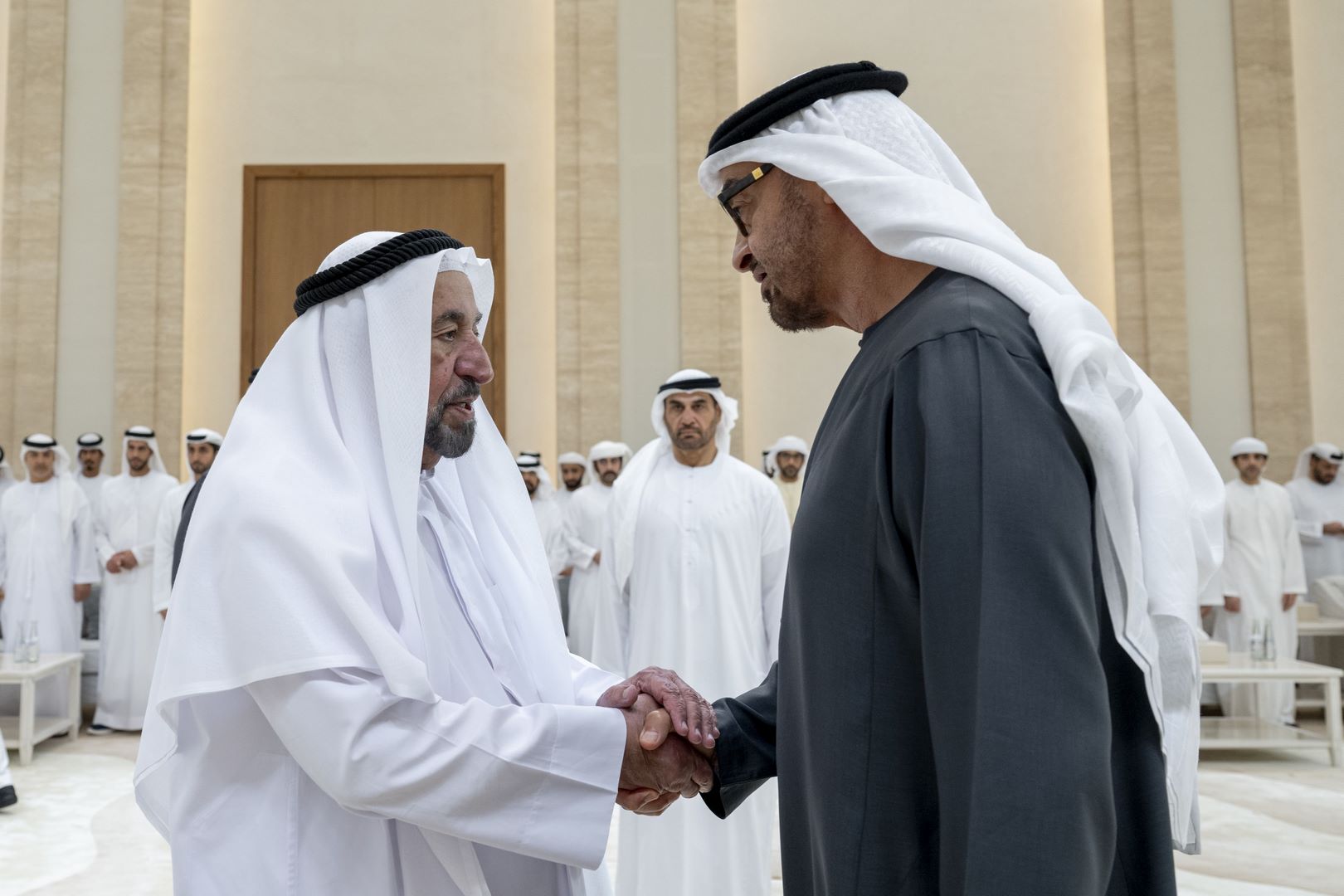 كما قدم التعازي إلى سموه ــ في قصر المشرف بأبوظبي ــ كلٌّ من سمو الشيخ عبدالله بن سالم بن سلطان القاسمي نائب حاكم الشارقة وسمو الشيخ سلطان بن أحمد بن سلطان القاسمي نائب حاكم الشارقة وسمو الشيخ عمار بن حميد النعيمي ولي عهد عجمان وسمو الشيخ محمد بن حمد بن محمد الشرقي ولي عهد الفجيرة بجانب عدد من الشيوخ والوزراء وكبار المسؤولين والمواطنين.