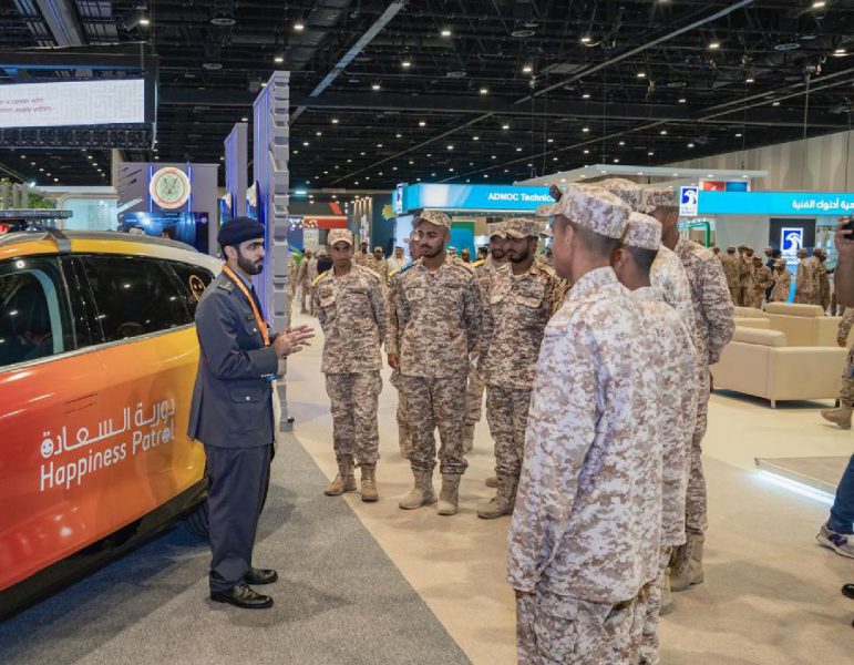 وزار معالي الدكتور أحمد بن عبدالله بالهول الفلاسي وزير التربية والتعليم جناح شرطة أبوظبي خلال الافتتاح ،بحضور معالي الدكتور سلطان بن سيف النيادي وزير دولة لشؤون الشباب، واطلعا على التسهيلات والوظائف التي تقدمها إدارة الاختيار والتعيين بشرطة أبوظبي لمجندي الوظائف الخدمة الوطنية إلى جانب زيارة منصة التدريب الافتراضي والإطلاع على أهداف الروبوت الآلي والدوريات الأمنية ودورية السعادة .