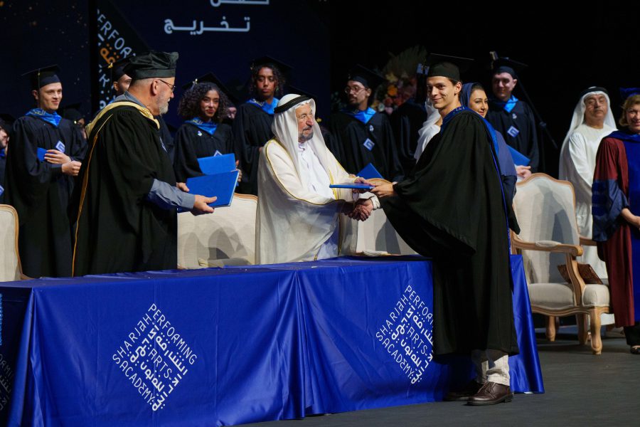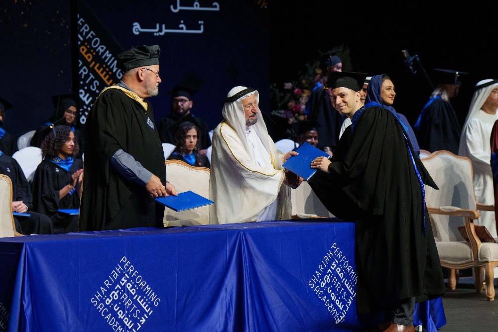 شهد صاحب السمو الشيخ الدكتور سلطان بن محمد القاسمي عضو المجلس الأعلى حاكم الشارقة، رئيس أكاديمية الشارقة للفنون الأدائية قبل ظهر اليوم، حفل تخريج الدفعة الثانية من طلبة الأكاديمية.