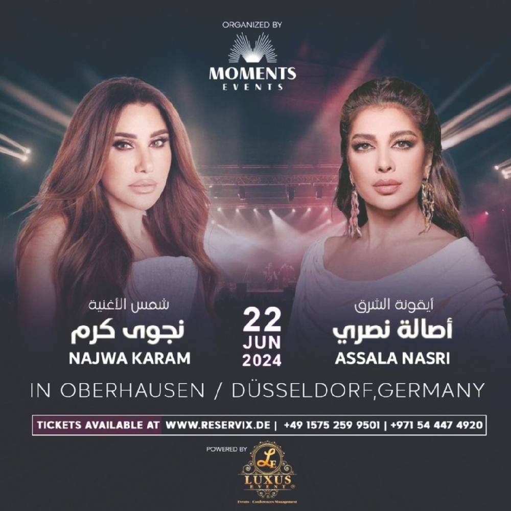وتبدأ جولتها العالمية بحفل غنائي في ألمانيا في يوم 22 يونيو . الجاري، وتشارك في الحفل الفنانة أصالة في مسرح “أوبرهاوزن”.