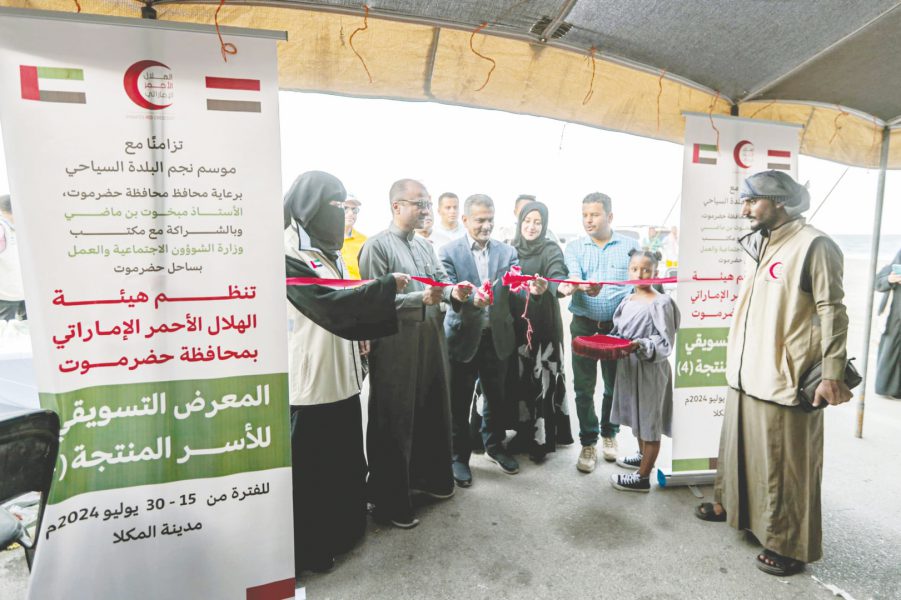 دشنت هيئة الهلال الأحمر الإماراتي، أمس، المعرض التسويقي الرابع للأسر المنتجة، تزامنًا مع موسم “نجم البلدة” السياحي، بمشاركة 61 أسرة منتجة بمديرية المكلا، وعدد 39 أسرة منتجة بمديرية غيل باوزير، بهدف إبراز مواهب هذه الأسر ودعم رائدات الأعمال وصاحبات المشاريع الصغيرة في محافظة حضرموت، ومساعدتها على تسويق منتجاتها وتعزيز دورها في الاقتصاد المحلي في ساحة العروض (المنصة) بساحل حضرموت، وذلك برعاية مبخوت مبارك بن ماضي محافظ محافظة حضرموت وبالشراكة مع مكتب الشئون الاجتماعية والعمل بحضرموت الساحل.