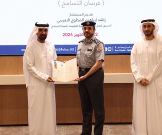وكرم العميد عبدالله محمد الزعابي مدير إدارة المعاهد الشرطية والأمنية المستشار راشد إبراهيم النعيمي المنسق العام للمبادرة الوطنية ” الحكومة حاضنة للتسامح “، وفرسان التسامح من القيادة العامة لشرطة أبوظبي.