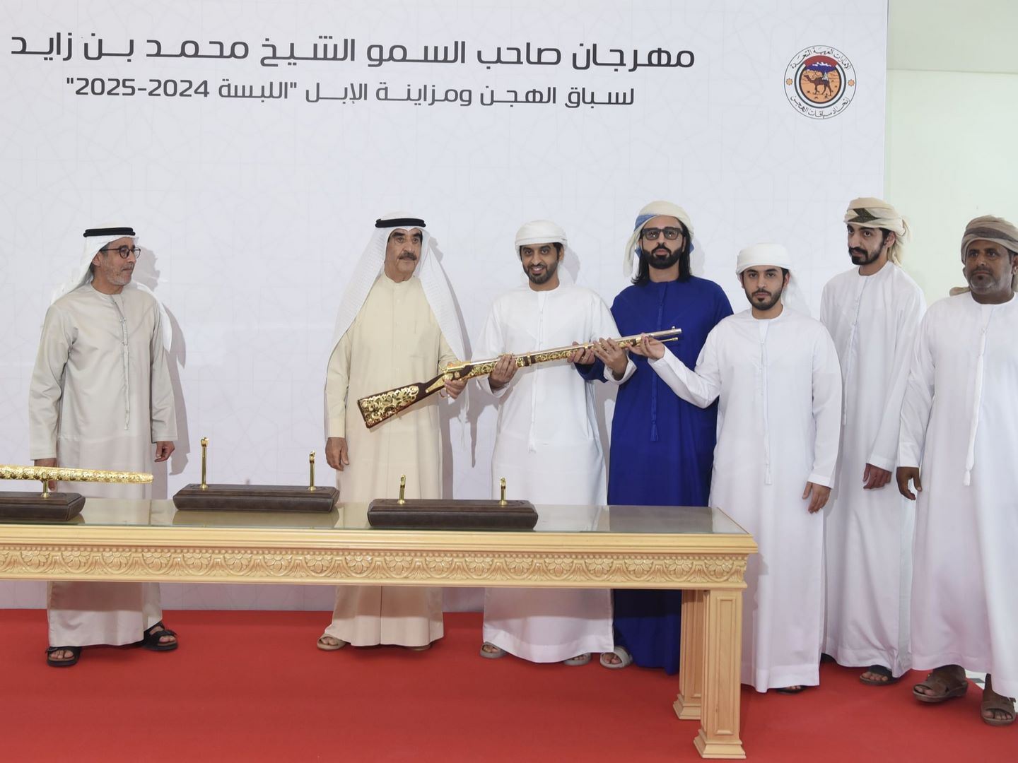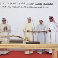 حاكم أم القيوين يشهد اليوم الختامي لمهرجان محمد بن زايد لسباقات الهجن ومزاينة الإبل
