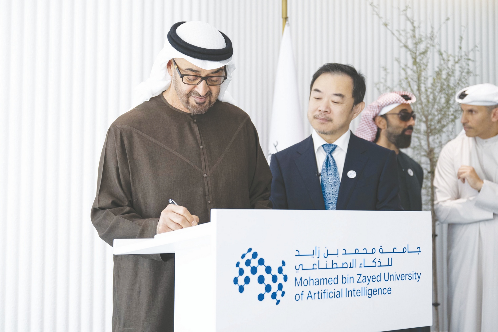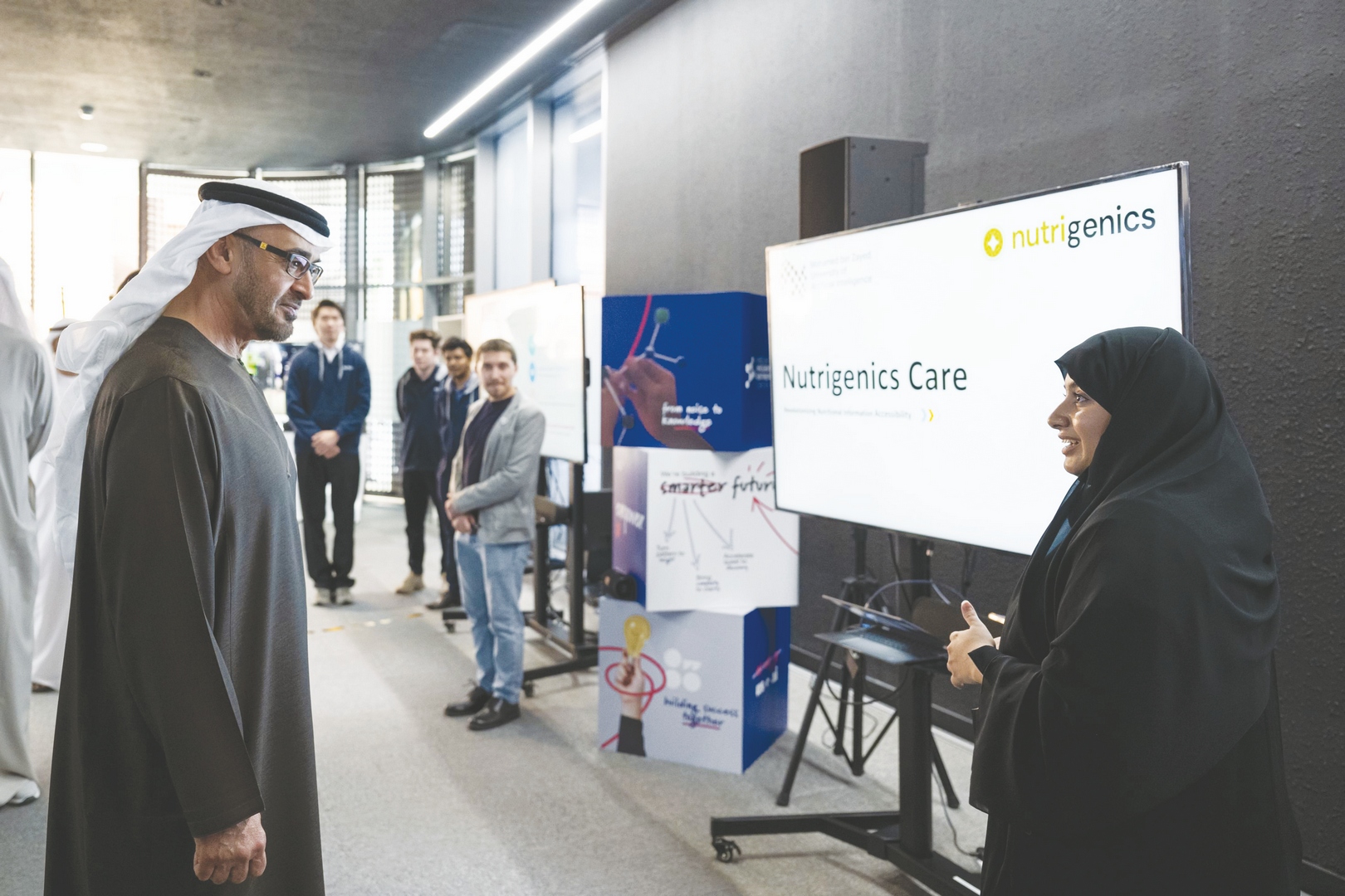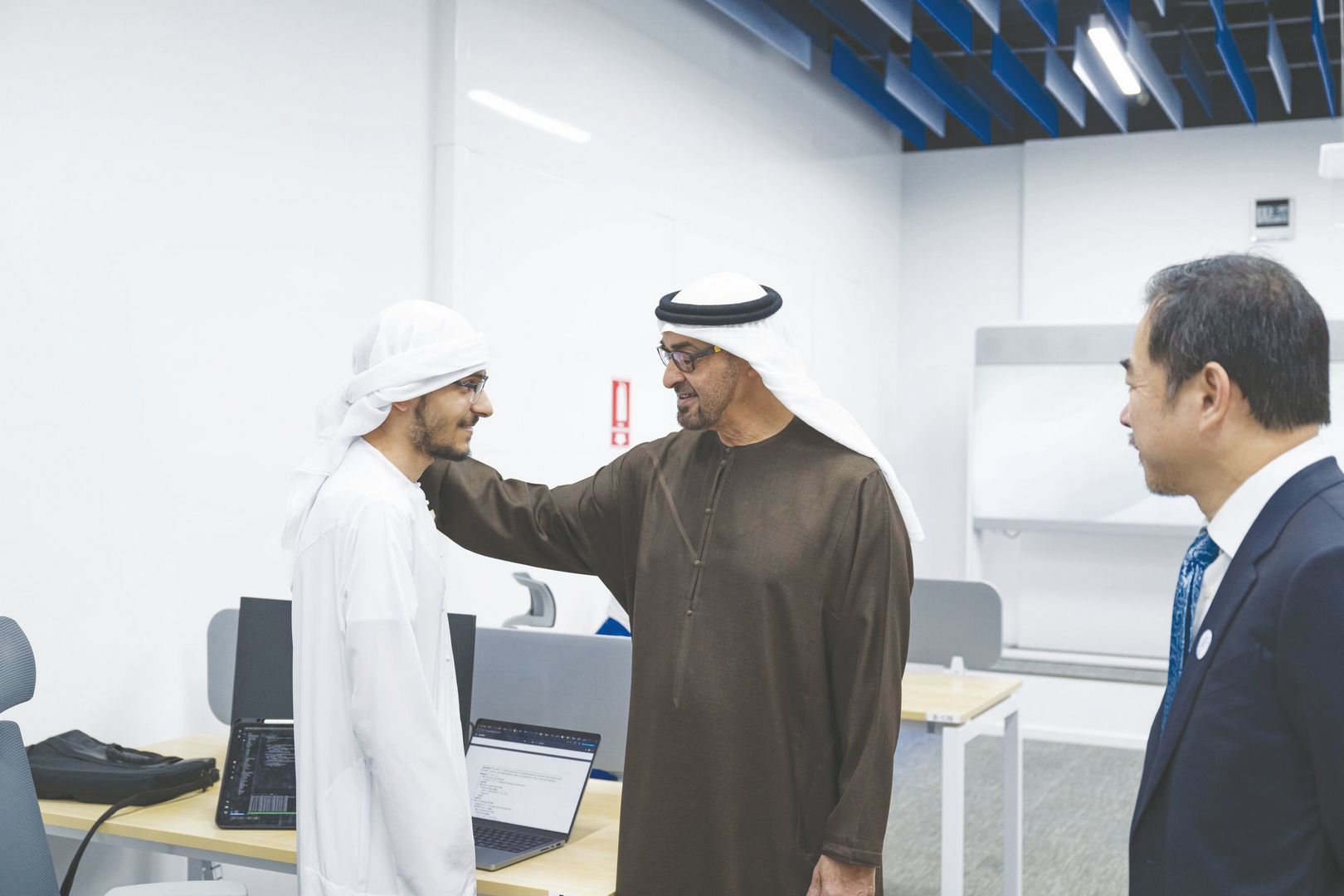 والتقى صاحب السمو رئيس الدولة خلال الجولة البروفيسور إريك زينغ رئيس جامعة محمد بن زايد للذكاء الاصطناعي وعدداً من أعضاء الهيئتين الإدارية والتدريسية بجانب عدد من طلبة الدراسات العليا وحثهم على المثابرة وبذل مزيد من الجهد في تحصيل العلوم التي يخدمون بها أوطانهم ومجتمعاتهم.