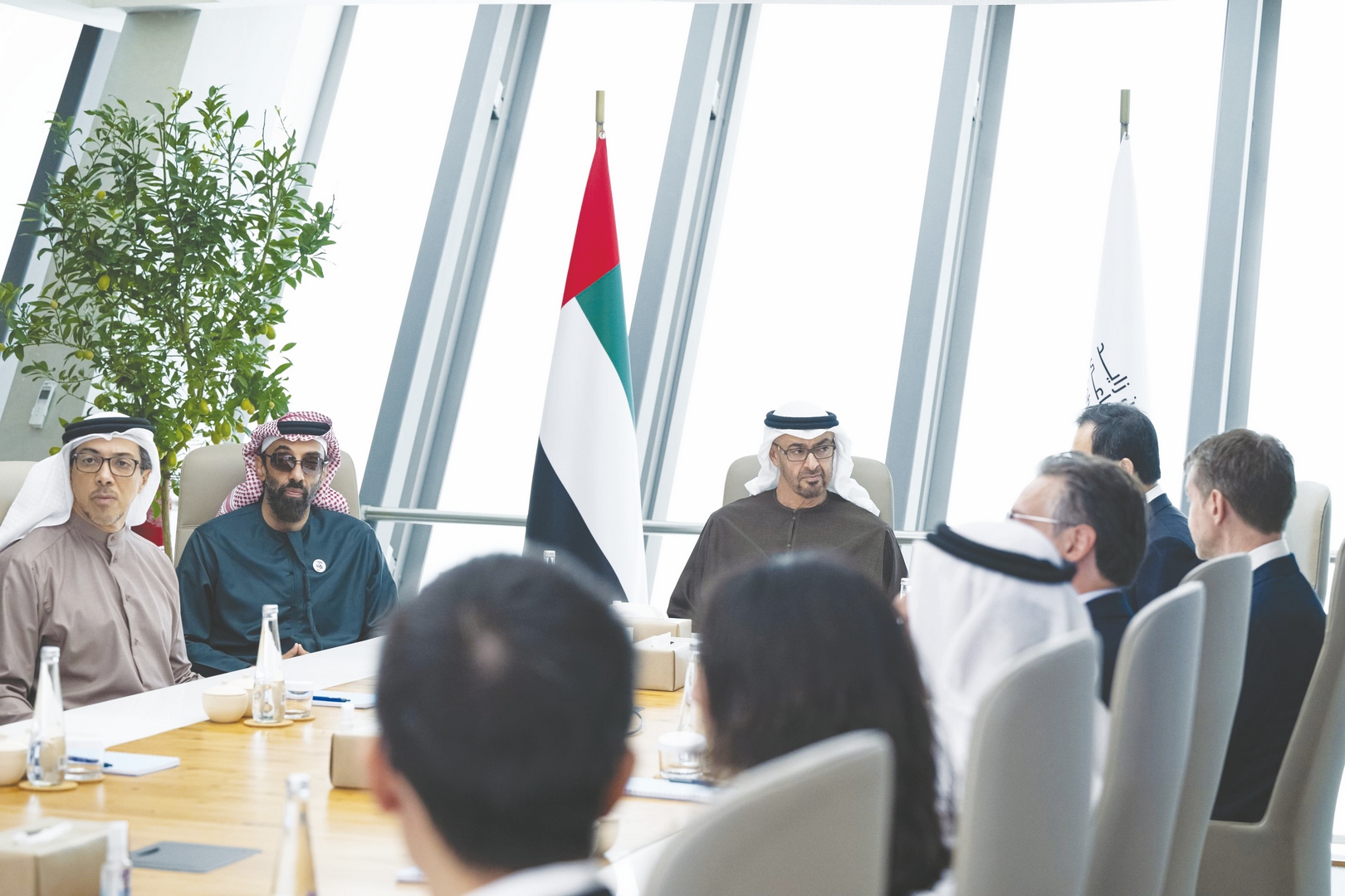 رافق سموه خلال الجولة..سمو الشيخ منصور بن زايد آل نهيان نائب رئيس الدولة نائب رئيس مجلس الوزراء رئيس ديوان الرئاسة وسمو الشيخ طحنون بن زايد آل نهيان نائب حاكم إمارة أبوظبي مستشار الأمن الوطني وسمو الشيخ حمدان بن محمد بن زايد آل نهيان نائب رئيس ديوان الرئاسة للشؤون الخاصة ومعالي الشيخ محمد بن حمد بن طحنون آل نهيان مستشار رئيس الدولة ومعالي الدكتور سلطان بن أحمد الجابر وزير الصناعة والتكنولوجيا المتقدمة ومعالي خلدون خليفة المبارك رئيس جهاز الشؤون التنفيذية ومعالي الدكتورأحمد مبارك المزروعي رئيس مكتب رئيس الدولة للشؤون الإستراتيجية رئيس مكتب أبوظبي التنفيذي وعدد من كبار المسؤولين.وام