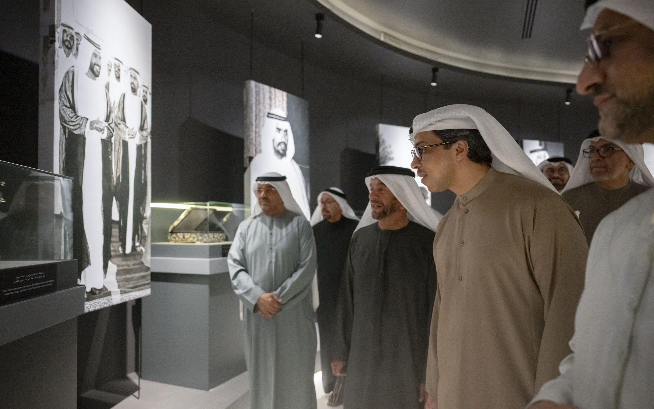 واطّلع سمو الشيخ منصور بن زايد على محتويات القاعة، التي تضم وثائق مكتوبة وأفلامًا وثائقية تحكي جوانب من سيرة الشيخ سرور بن محمد برفقة القائد المؤسس المغفور له الشيخ زايد بن سلطان آل نهيان، طيّب الله ثراه.