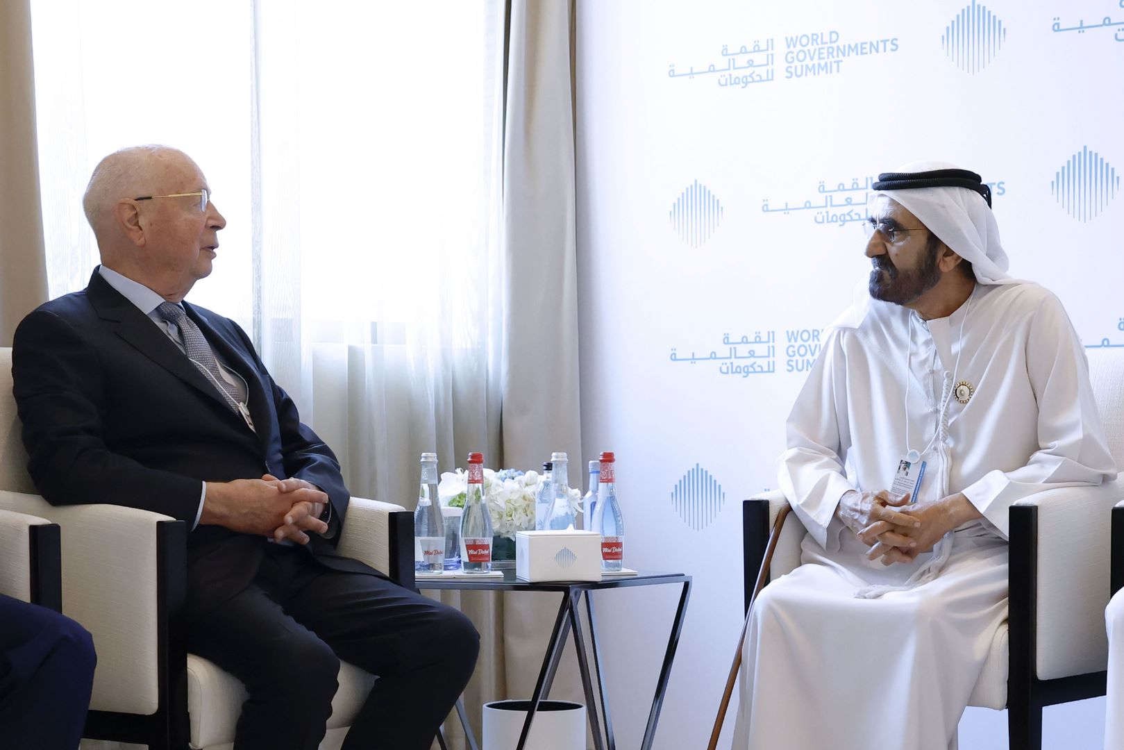 ورحّب صاحب السموّ الشيخ محمد بن راشد آل مكتوم بمشاركة البروفيسور شواب في أعمال القمة العالمية للحكومات 2025، مثمّناً سموّه دور منتدى “دافوس” في تعزيز التعاون الدولي، وفتح آفاق جديدة أمام أصحاب القرار في العالم لتمكينهم من مواجهة التحديات التنموية والاقتصادية.