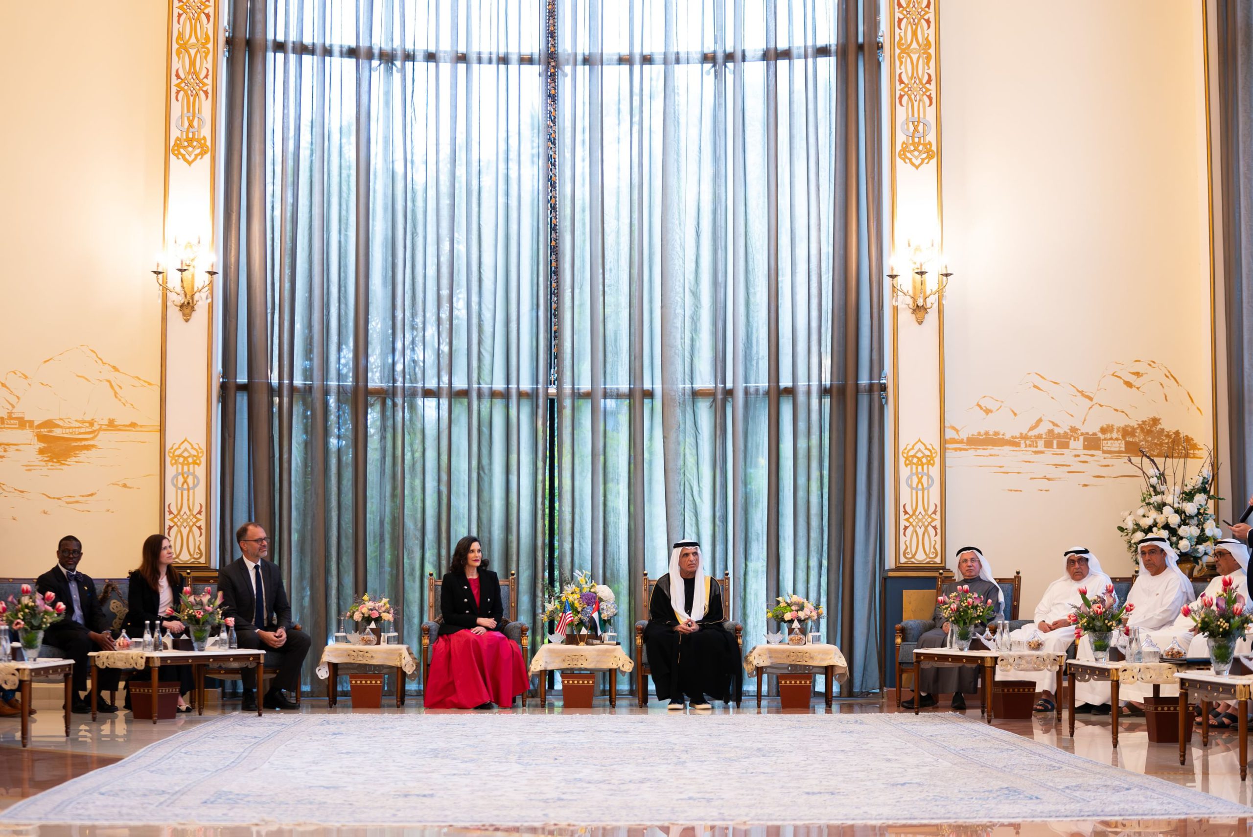 من جانبها أعربت معالي غريتشن ويتمر في نهاية اللقاء عن بالغ شكرها لصاحب السمو حاكم رأس الخيمة على حفاوة الاستقبال وكرم الضيافة، مشيدةً بمتانة العلاقات الإستراتيجية بين دولة الإمارات والولايات المتحدة، وبالبيئة الاقتصادية والسياحية المتنامية في إمارة رأس الخيمة.